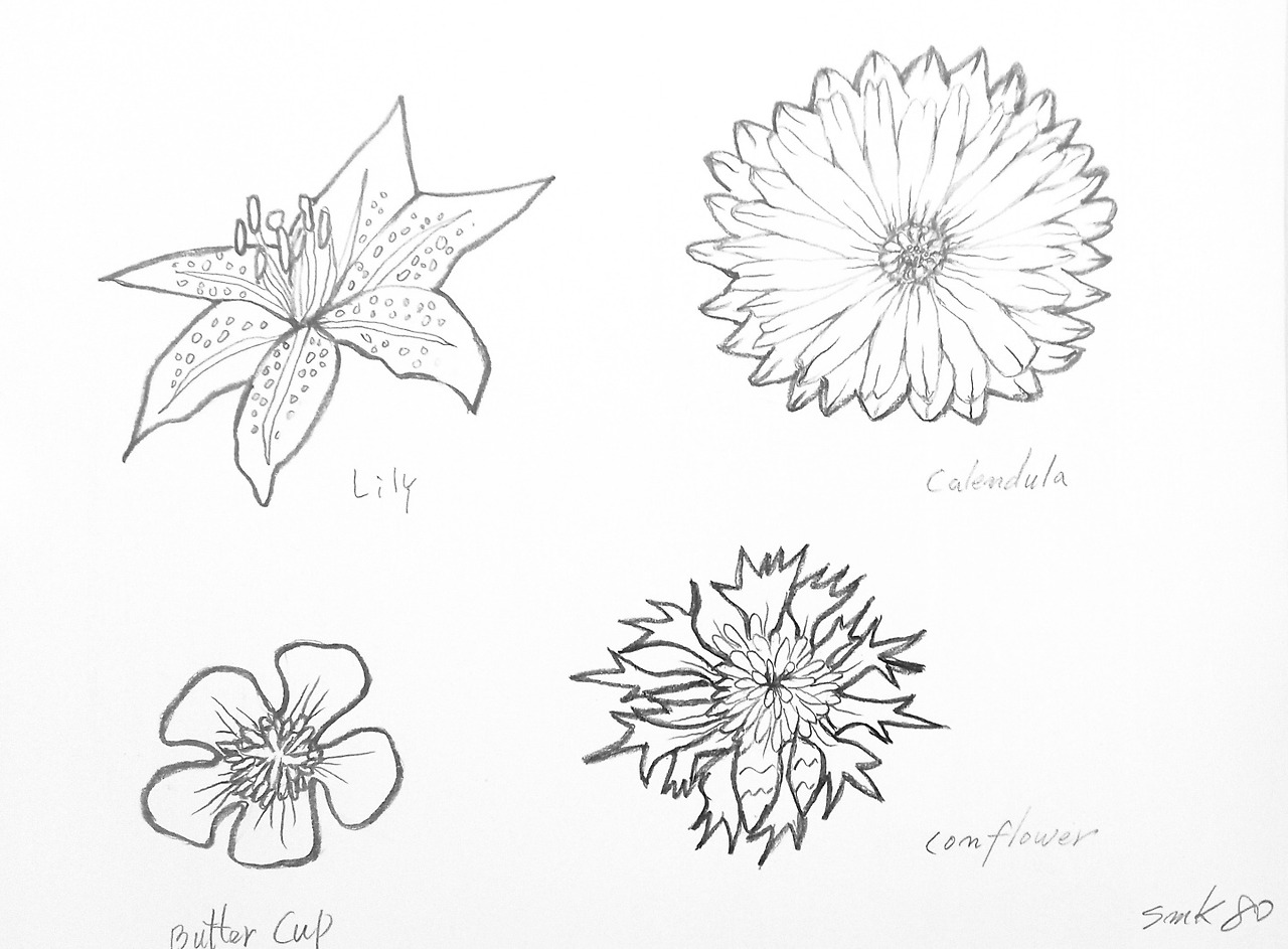 오늘은 여러 가지 꽃을 그려보겠습니다. 먼저 해바라기 꽃입니다. 무작정 그리는 것보다는 방법을 알면 수월할 것 같아 유튜브 몇 편을 시청했습니다. 역시 고수들의 실제 그리는 영상을 한 번 보고 나니 머리에 쏙쏙 들어오네요. 대학 '입시미술'하는 것도 아닌데, 엄청 열심히 유튜브도 시청하고 매일 그림에 열중하는 걸 가족들이 보고 입시 수석 입학할 기세라고 하네요. 저 스스로 생각해도 그 열정에 놀랍습니다.