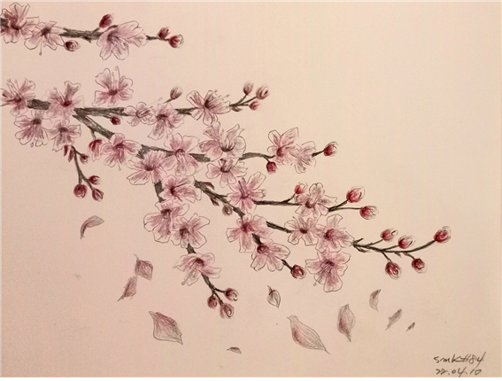 매화, 벚꽃, 개나리, 진달래, 튤립... 잎도 나오기도 전에 꽃부터 먼저 피우는 녀석들, 성질도 급합니다. 외투도 걸치지 않고 봄나들이 나왔습니다. 벚꽃을 그리려다 보니 이른 봄 지나쳐간 매화가 시샘을 합니다.