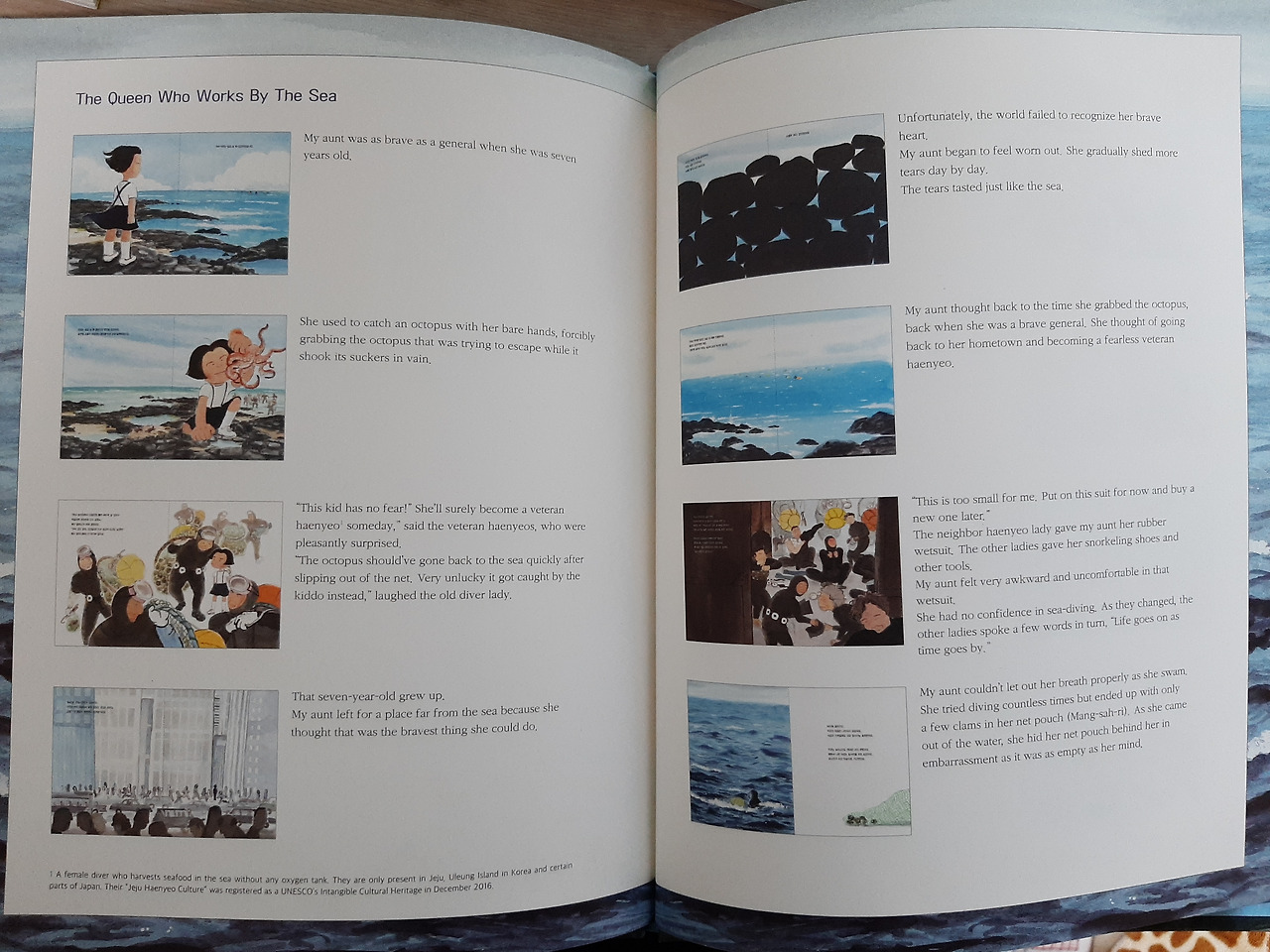 그녀가 고향 제주도 우도에 대한 애착이나 해녀로 천직을 삼을 뻔한 일화들을 잘 알기에 누구보다 이번 그림책이 남다르게 다가왔다.
