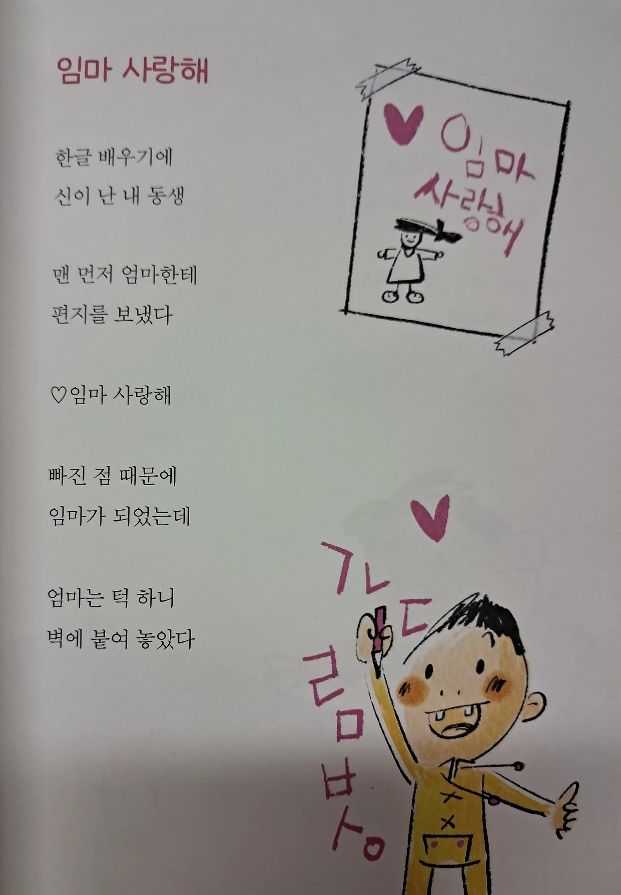 제가 밀었던 동시집 제목이ㅡ임마 사랑해ㅡ였거든요.