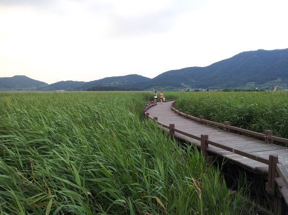 “손으로 잡을 수 없으면서도 그것은 뚜렷이 존재했고, 사람들을 둘러쌌고, 먼 곳에 있는 것으로부터 사람들을 떼어놓았다. 안개, 무진의 안개, 무진의 사람들이 아침에 만나는 안개, 사람들로 하여금 해를, 바람을 간신히 부르게 하는 무진의 안개...” 아마도 잔디정원 위쪽에 자리한 순천문학관을 들르면 분명 그의 소설과 이곳 대대포구와 무진교에 대한 설명이 있을 터이다. 하지만 그것은 다음 기회로 미루고 오늘 우리는 무진교 너머의 갈대숲과 용산(龍山) 전망대에 집중하기로 했다.