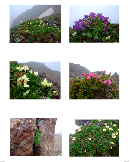 서북편의 산등성, 산허리에 가장 많이 자라고 있는 것들은 역시 노랑만병초, 들쭉, 호범꼬리, 담자리꽃나무, 두메자운, 두메분취 따위의 땅 위에 드러누운 풀과 나무들이다. 7월 초를 장식하는 백두산 서편의 가장 대표적인 들풀들은 아마도 이들이 아닐까 싶다.
