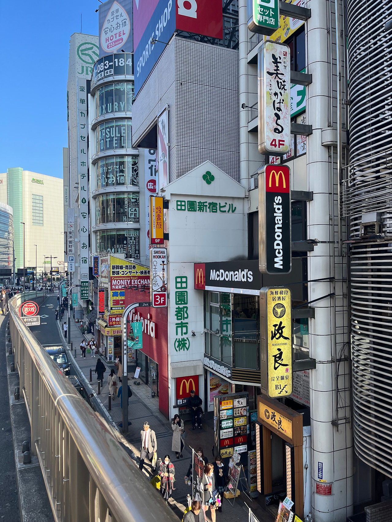 민박에서 걸어서 15분 정도 가면 신주쿠 시내 번화가가 나온다. 걸어가는 길에 건물 보는 것도 재밌지만 알록달록 자판기나 나무덩굴로 감싸진 버스정류장 등 개성있는 풍경들이 눈을 즐겁게 해준다. 신주쿠역 근처인 시내 번화가로 도착했을 때는 사람으로 빽빽이 가득찬 미친듯한 인구밀도를 보여주는 광경이 펼쳐진다.