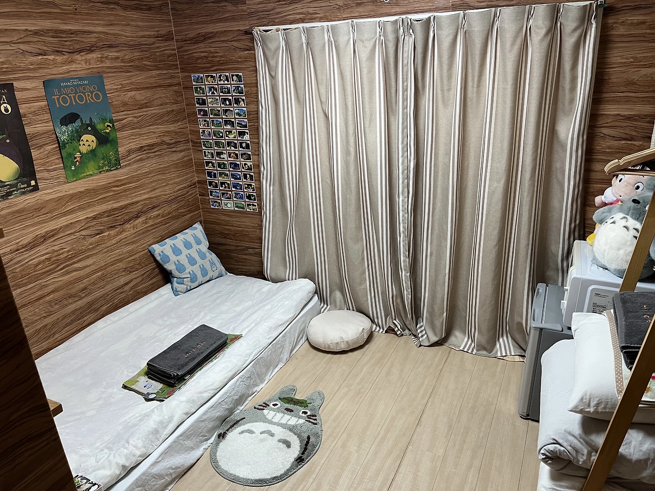 아침 일찍부터 피곤한 몸을 이끌고 사장님께 청소, 세탁, 비품수납 등 전반적인 민박관리를 배웠다. 민박의 방은 테마방과 일반방이 있고 총 7개의 방이 있다. 밑에 사진은 처음 청소한 토토로방(테마방)인데 아기자기하게 꾸며놔서 나름 감성있고 귀여웠다. 그래서 그런지 뭔가 일 하면서 기분이 좋아지기도 했고~ㅎ.