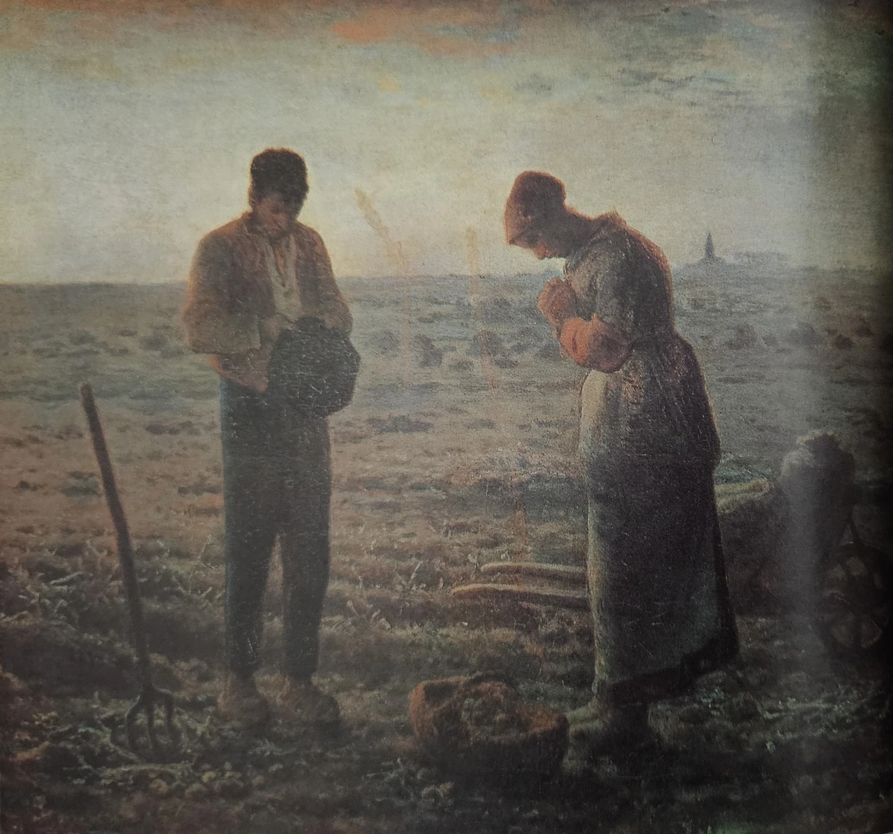 밀레의 그림 (만종)은 하루의 일과를 마친 뒤, 고된 삶일지라도 그저 신에게 감사하며 기도를 드리는