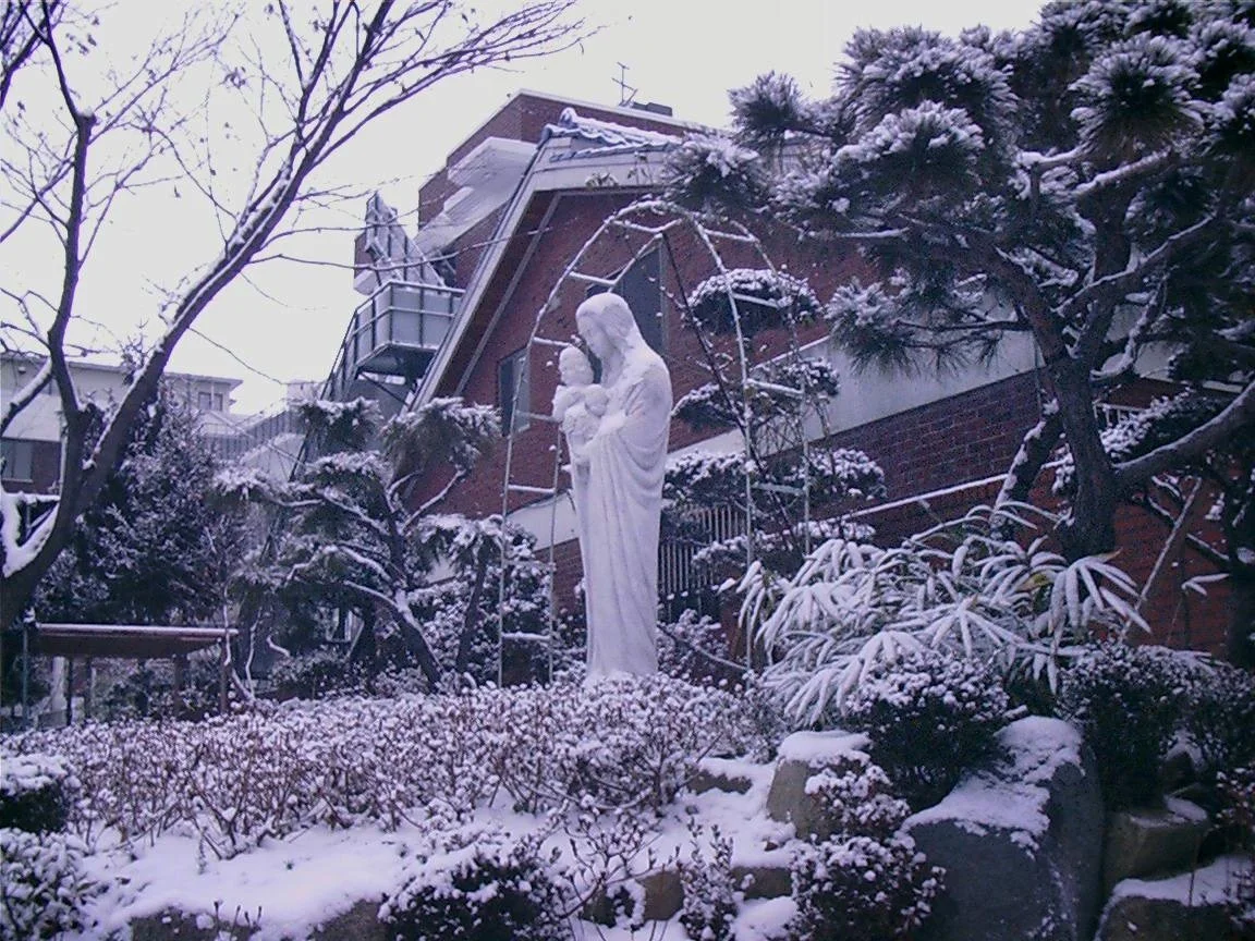 세상은 하얗게 뒤덮여 마치 미사 보를 쓴 것 모양