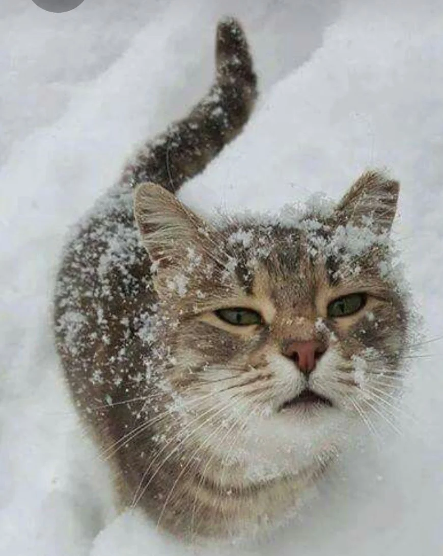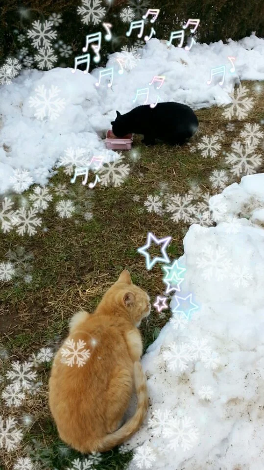 검둥아! 왜 눈을 먹니? 물으니 야옹!