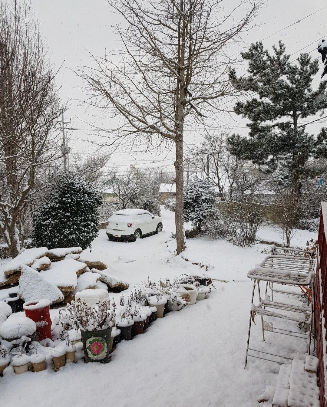 아버님이 “아가 눈이 머리에도 왔네! 하며