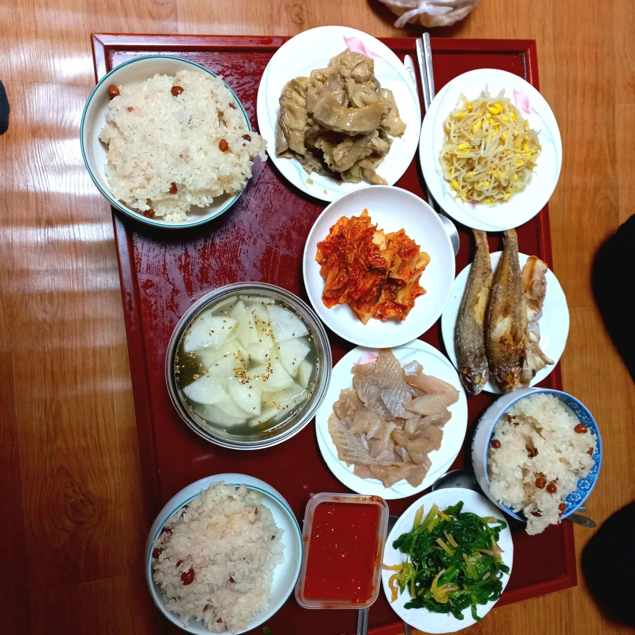 식혜도 담아 놓고서 상을 내와 다 먹으면