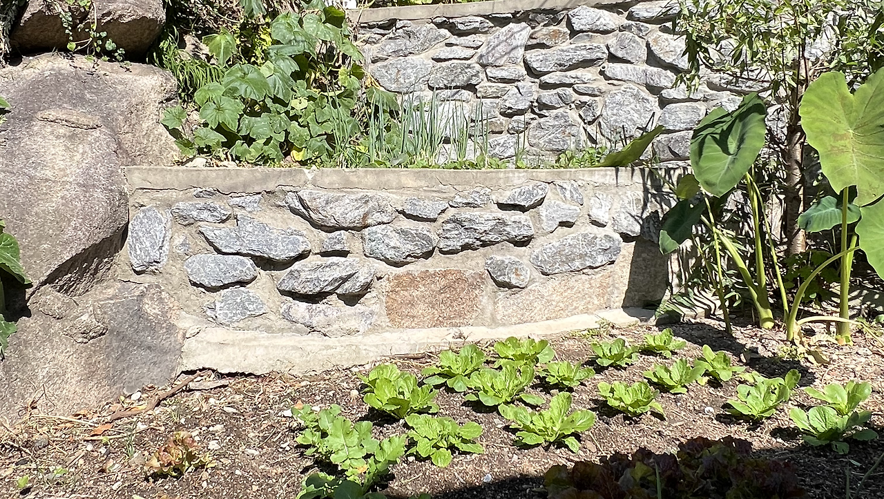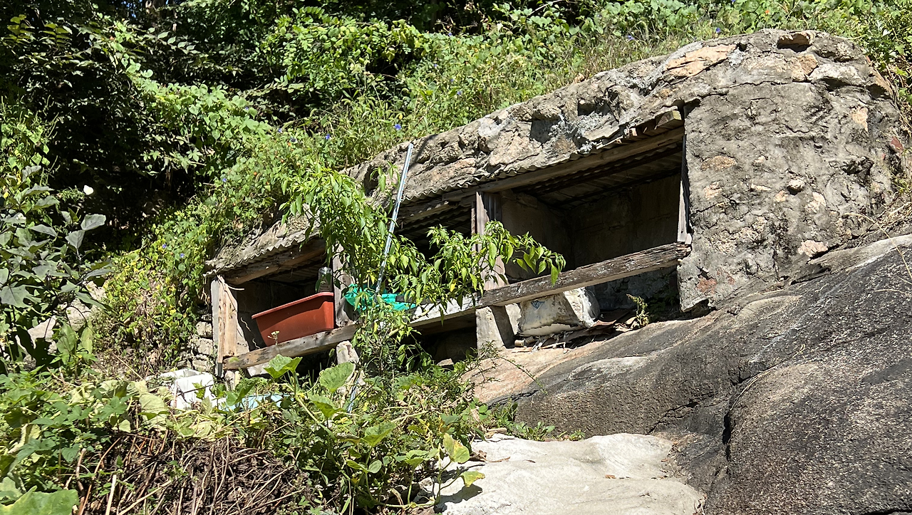 가파른 계단을 오르다 보니 무릉도원이 아닌 삶의 현장이 눈에 띄었다. 집들이 빽빽이 들어찬 좁은 오르막길 산 밑으로 마을 주민들이 일군 계단식 텃밭이 있었다. 손바닥만 한 땅이라도 애써 가꾸며 먹을 것을 손수 키우는 마을 주민들의 삶이 현실적으로 다가왔고, 텃밭 한쪽에 놓인 붉은색 플라스틱 물통마저 친근하게 느껴졌다. 또 산 밑에 의문의 돌집이 있었는데, 옛날에 닭장으로 쓰던 곳이었다고 한다. 지금은 닭은 없고 이런저런 물건들이 널려 있으며 가꾸지 않은 풀만 무성한 가운데 흰 나비 두 마리가 날아다니고 있었다. 무릉도원이 곧 현실의 행복인지도 모르겠다.