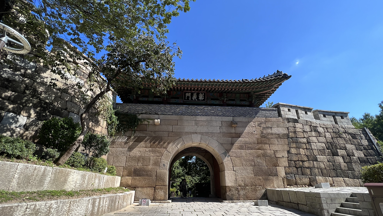 차를 마시며 산을 바라볼 수 있는 예쁜 카페와 개성이 있는 집들을 구경하며 한참을 걸으니 창의문에 다다랐다. 인조반정 때 이 문으로 의군이 들어와 반정을 성공시켰다고 하니 세검정과 함께 역사적으로 연결되는 곳이다.