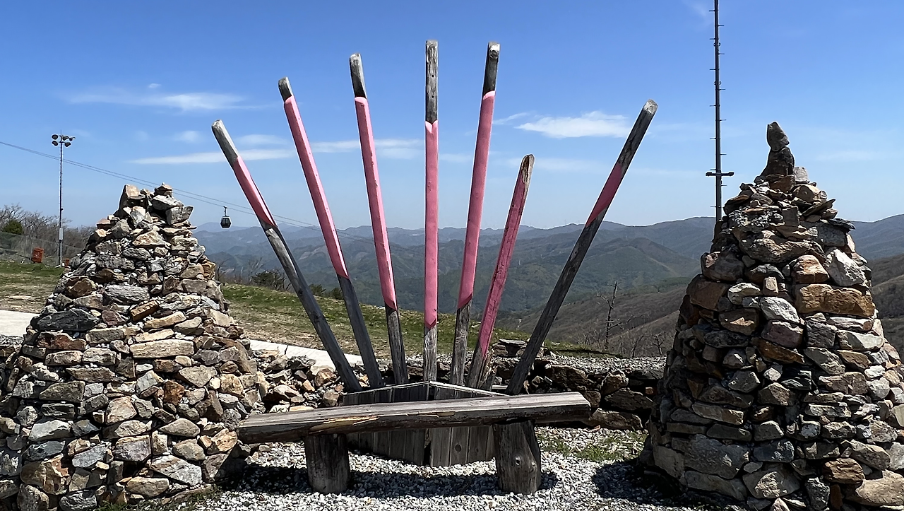 하이원리조트에는 ‘하늘길’이라는 트레킹 코스가 있다. ‘하늘길’은 둘레길, 고원 숲길, 운탄고도, 무릉도원길로 이루어져 있어서, 우리는 그중 고원 숲길을 걷기로 했다. 마운틴 곤돌라를 타고 20분쯤 올라 1340 고지인 하이원 탑에 도착했다. 밖으로 나오니 움직이지 않는 그네가 있었다. 사진 찍는 자리인가 보다. 그 아래로 산들이 굽이굽이 펼쳐져 있어서 눈이 시원했다. 산등성이와 맞닿은 하늘은 푸르렀고, 흰 구름이 군데군데 뜬 풍광이 상쾌했다.