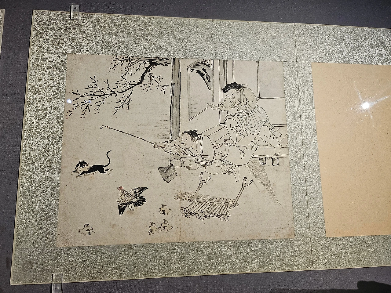 김홍도의 화풍을 계승했다던 김득신의 작품도 유심히 보았다. 참 신기하게도 작품만 봤을 때 단원의 그림이라고 생각할 정도로 비슷해 보였다. 단원 김홍도의 <씨름>, <서당> 등의 작품들과 느낌이 비슷했다. 섬세하게 그려 낸 인물의 표정과 생동감 있는 동작의 표현이 특히 유사했다. 그중에서도 김득신의 <야모도추> 작품이 기억에 남는다. 병아리 한 마리를 물고 도망가는 고양이, 새끼를 잃은 암탉, 도망가는 남은 병아리들, 고양이를 쫓으려다 넘어지기 직전인 남자. 긴박함을 참 잘 그려낸 생동감이 느껴졌다.