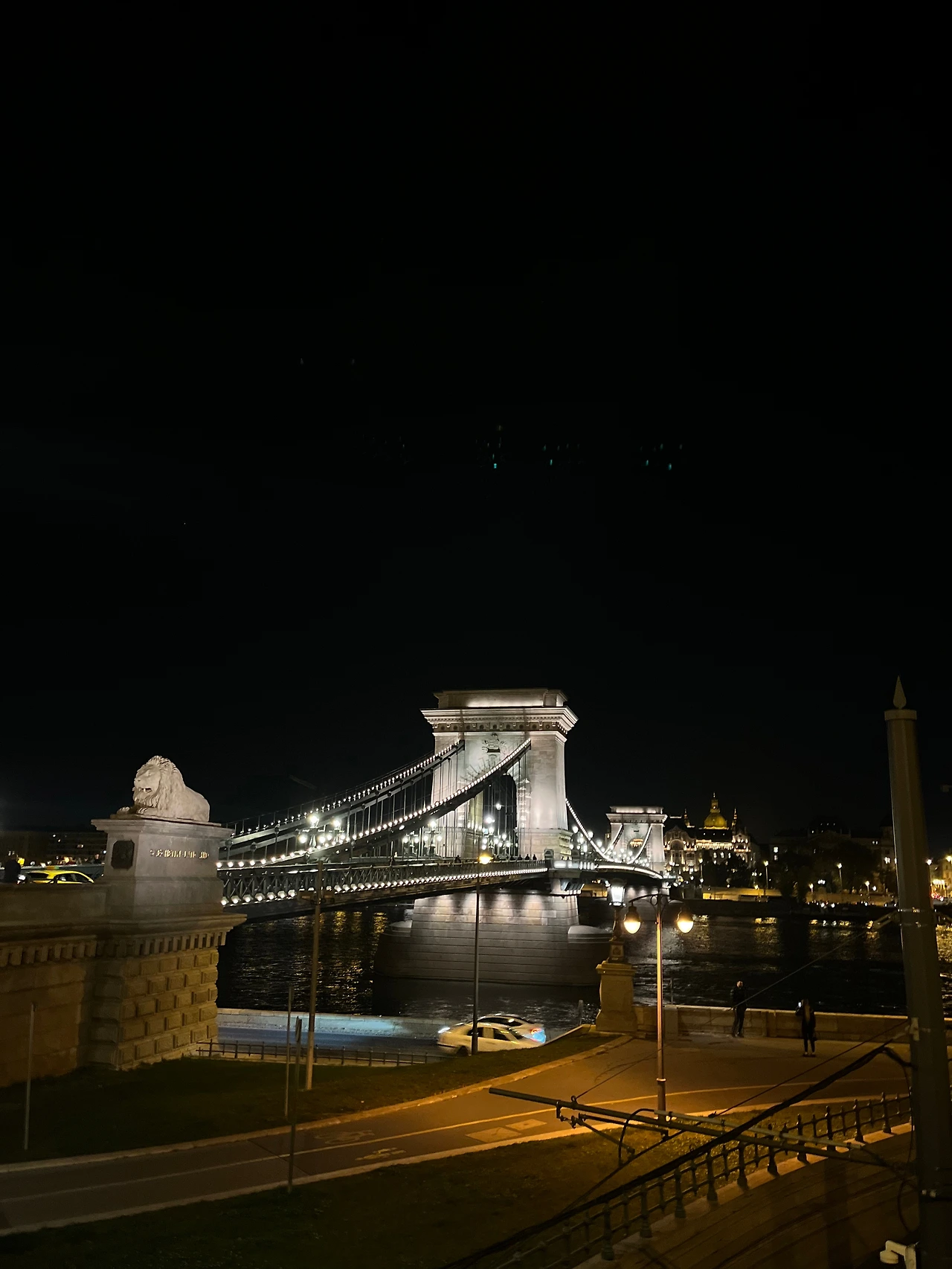 성 이슈트반 대성당의 황금빛 모습까지 본 뒤, 이제 유럽 3대 야경인 부다페스트의 밤을 만나러 이동했다. 3대 야경에는 프랑스 파리, 체코 프라하, 그리고 헝가리 부다페스트 야경이 있다. 가장 먼저 도착한 야경 스폿은 부다와 페스트를 이어주는 '세체니 다리'였다. 다리 위에 서니 저 멀리 황금빛 옷으로 갈아입은 부다 왕궁도 보였다.