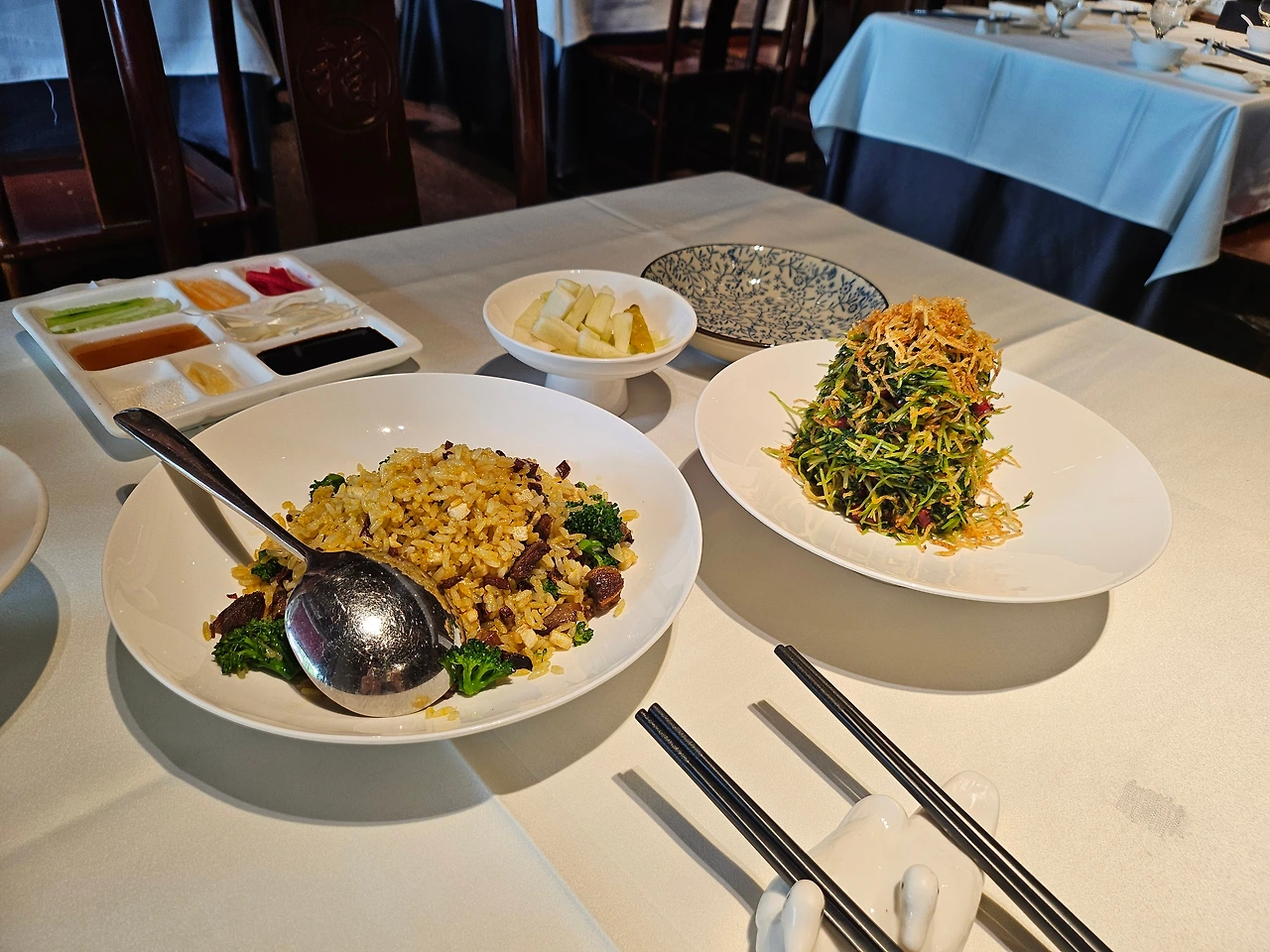 우리는 오리 반 마리와 밀전병, 콩싹무침, 그리고 볶음밥을 먹었다. 밀전병에 고기와 채소들을 넣고 소스를 찍어 먹어보았다. 아는 맛이지만 오랜만에 먹어보는 그 맛, 맛보는 순간 북경에 온전히 존재하고 있음을 느꼈다. 부드러우면서도 입안이 꽉 차는 맛이었다. 계속 먹다 보니 조금씩 느끼함을 느꼈지만, 그래도 이 식사 자리가 그저 좋아서 즐기면서 먹었다. 창 밖 너머의 풍경도 반찬삼아 보며, 이른 점심의 여유를 느긋하게 음미했다.