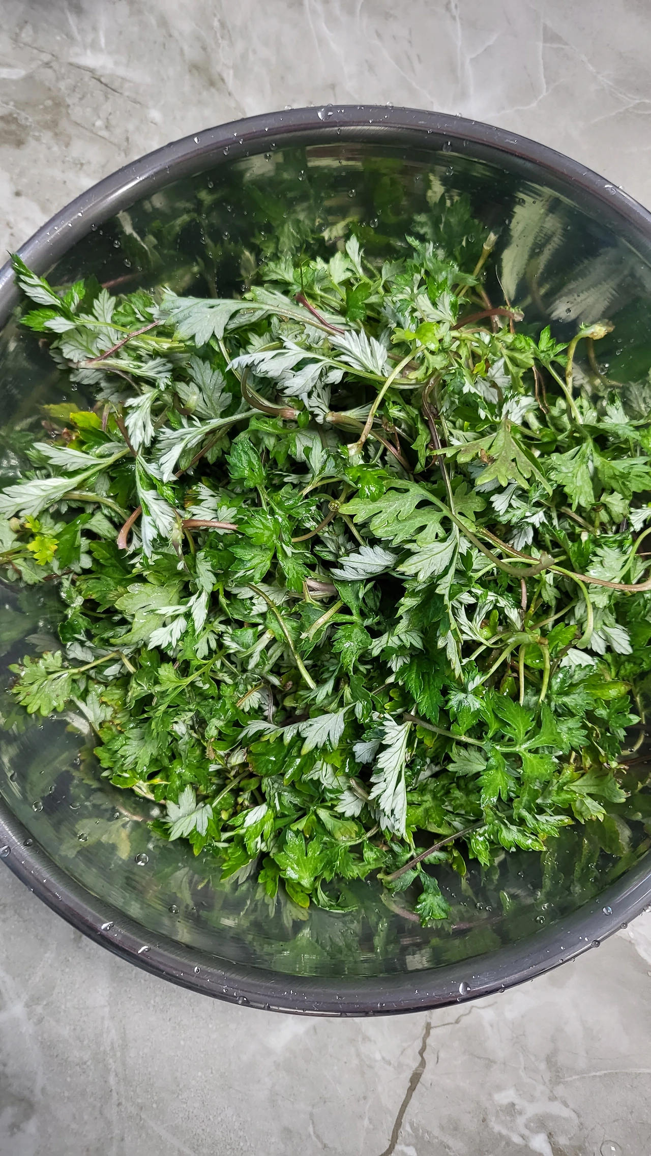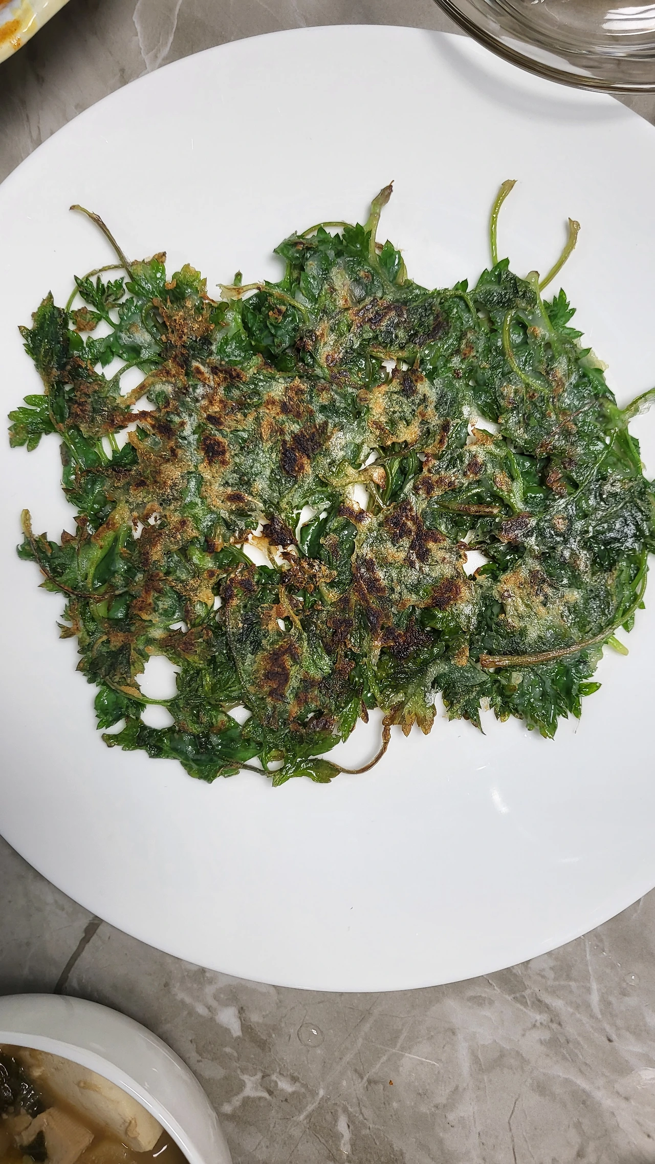 3일간 조금씩 캐놓은 쑥으로 쑥전을 만들었다.