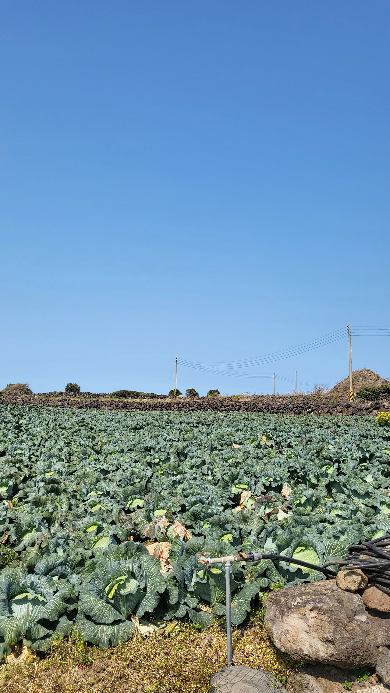 걸으며 끝없이 펼쳐져 있는 양배추 밭을 둘러싸고 있는 돌담들은 이루 말할 수 없는 따뜻한 돌이 되어있다.