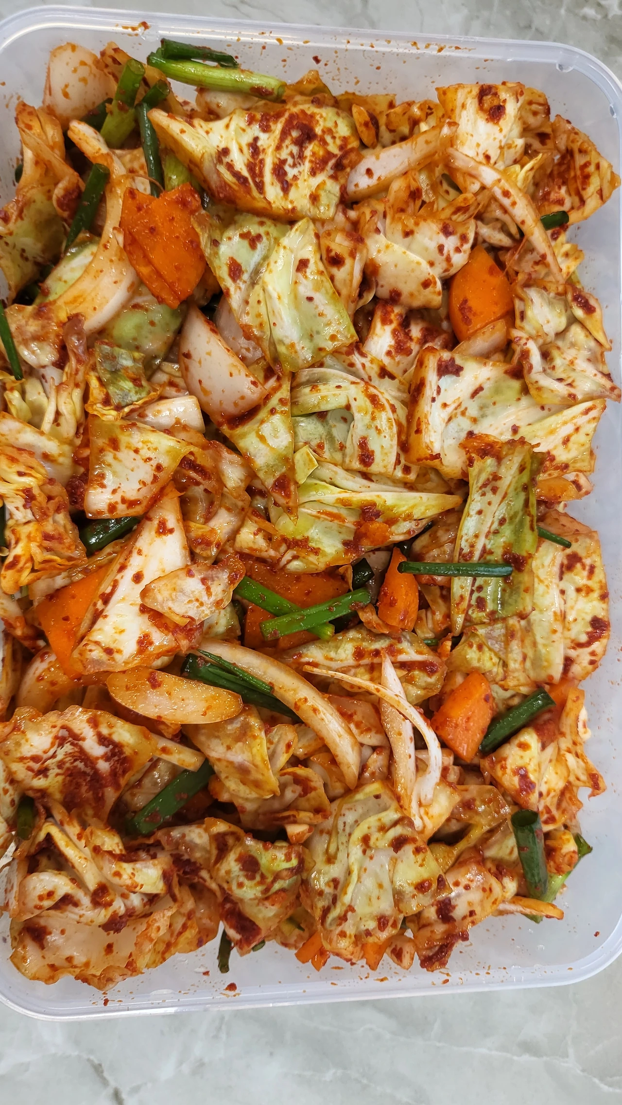 집 와서는 양배추김치를 담갔다.