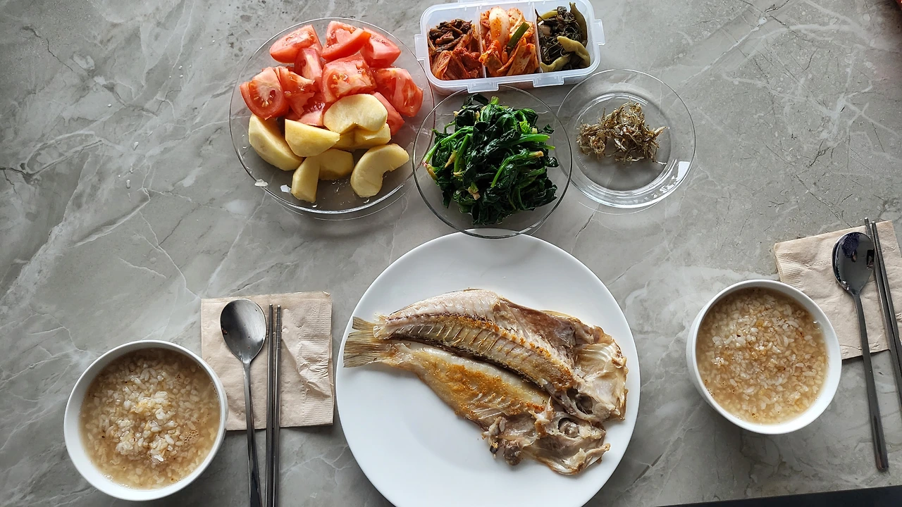 집에 와서는 누룽지를 끓여서 큼지막한 옥돔 굽고 시금치 무쳐서 속 편한 저녁을 먹었다.