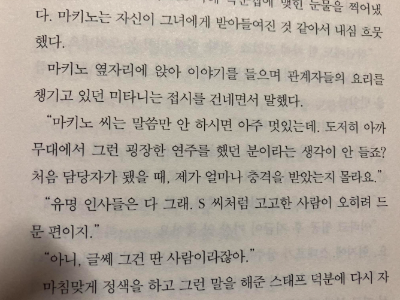 클래식 기타리스트인 마키노를 주인공으로 하는, 히라노 게이치로의 소설 <마티네의 끝에서>를 재독하고 있는 중에 아래의 대사가 눈길을 끈다.