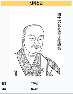 천연 스님이 어느 절을 방문했는데 날씨가 졸라 추웠다. 그래서 경내에 있는 목불(나무로 만든 부처상)을 가져와 도끼로 팬 다음 장작으로 썼단다. 그걸 안 다른 스님들이 노발대발하며 왜 그랬냐며 따져 물었다. 그러자 천연 스님이 천연덕스럽게 대답하기를,