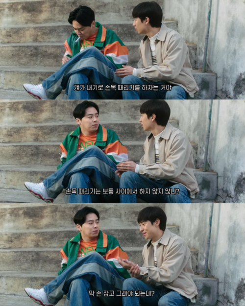 승민 : 아니, 손목 때리기는 '보통 사이'에서 하지 않지 않냐? 막 손 잡고 그래야 되는데?