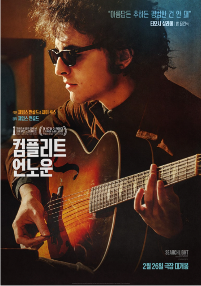 제목이 <컴플리트 언노운>인 이유는 밥 딜런의 '완전히 안 알려진' 이야기를 다루고 있기 때문일 거다. 영화의 맥락상으로는 그렇다. 다만 이 제목을 단어 그대로 '완전한 무명의'로 해석하면, '완전한 무명'은 나 같은 범인을 지칭하는 말이지 노벨 문학상까지 받은 밥 딜런 같은 명사에게 해당되는 말은 아니다.