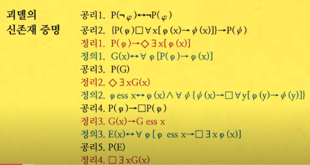 "존재라는 속성을 갖지 않는 '완전한 존재'란 생각할 수 없는 겁니다. 앞서 우리는 신이란 '더할 수 없이 완전한 존재'라고 정의했죠. 존재라는 속성을 갖지 않는 미인을 완전한 미인이라고 할 수 없듯이, 존재라는 속성이 없는 신이야 말할 것도 없지요. 존재란 속성이 없는 신은 이미 '더할 수 없이 완전한 존재'라는 신의 정의에서 어긋나는 것입니다. 따라서 신은 존재합니다."