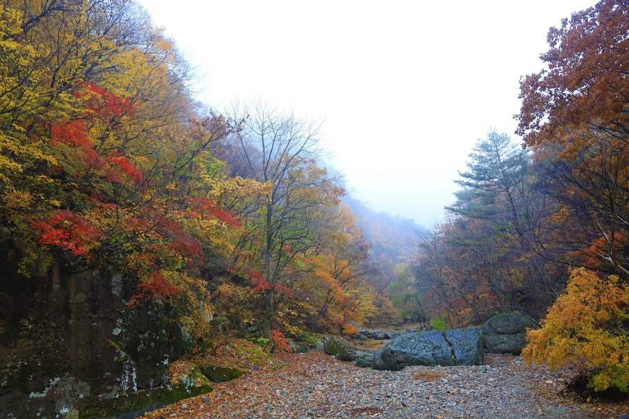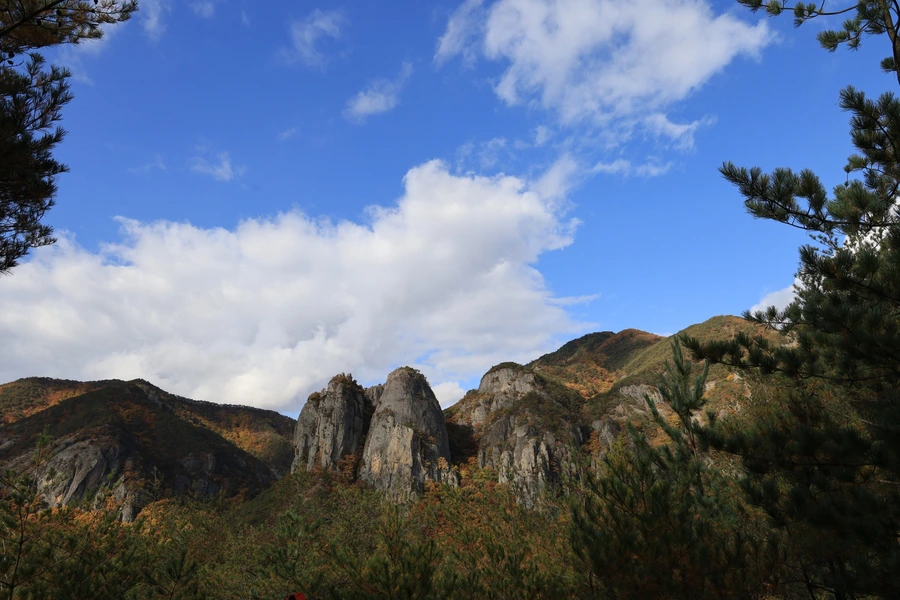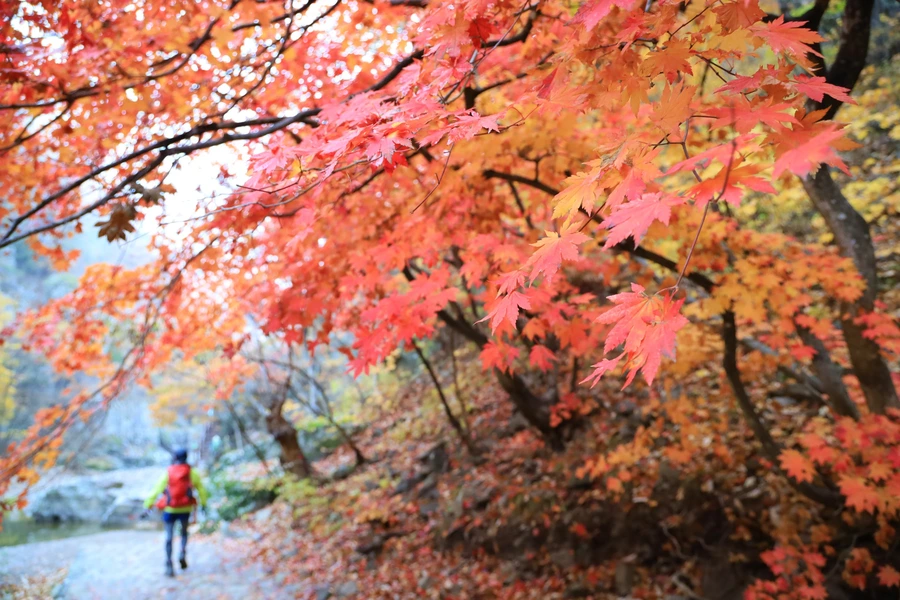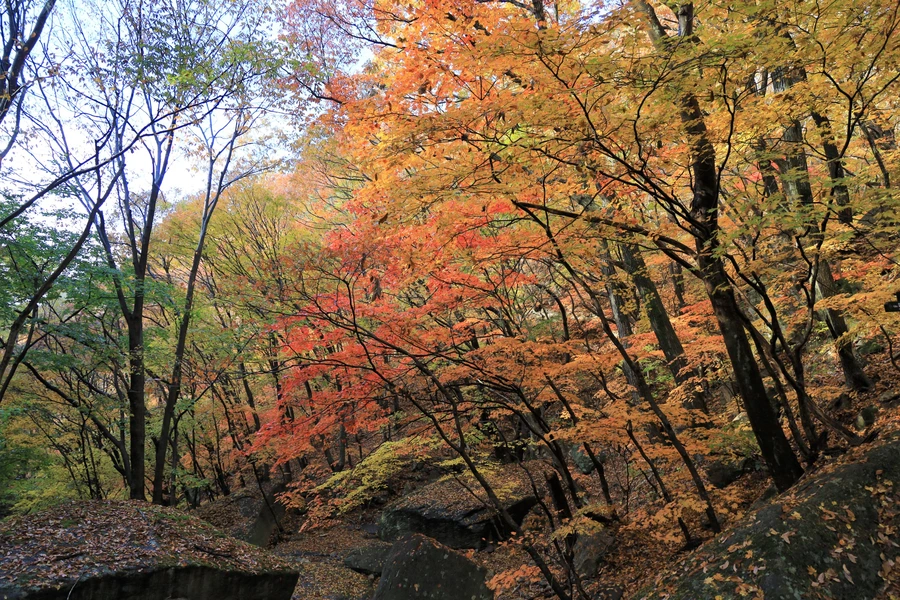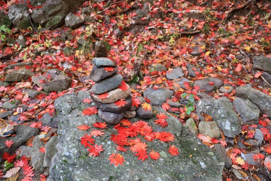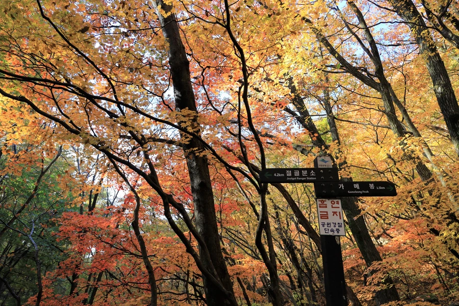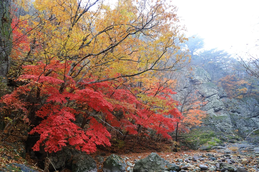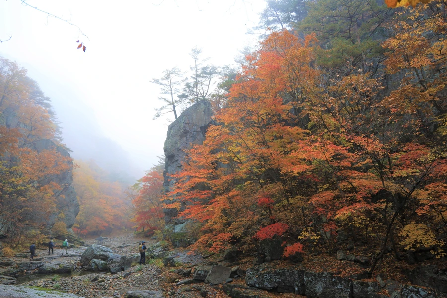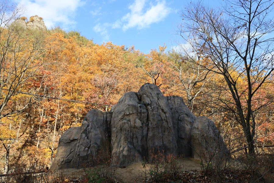 절골분소에서 후리메기 삼거리 사이가 단풍이 매우 아름답습니다. 단풍나무도 많지만, 설악산 흘림골에서처럼 기암괴석이 단풍과 멋지게 어울려 한 폭의 그림 같은 풍경이 펼쳐진답니다. 그런데 설악산과 다른 점은 그 기암괴석이 멀리 보이는 것이 아니라 아주 가까이에 있다는 것이죠.