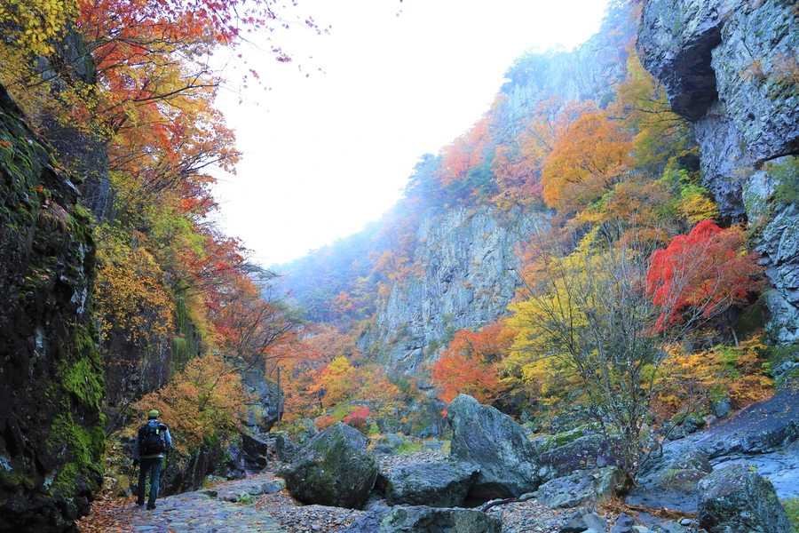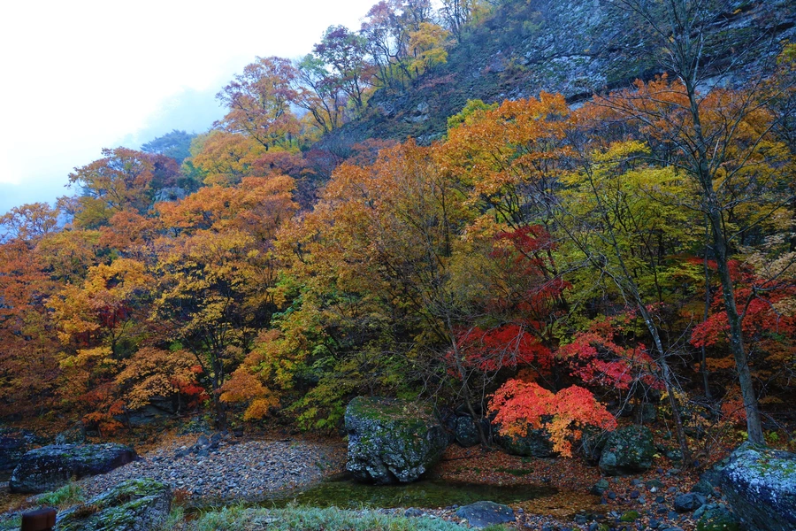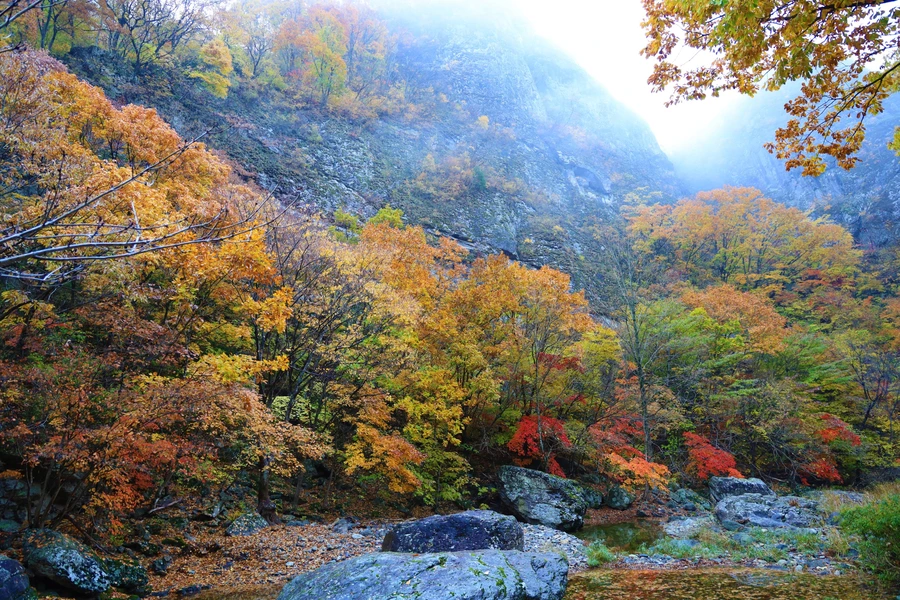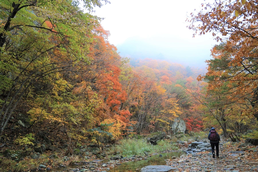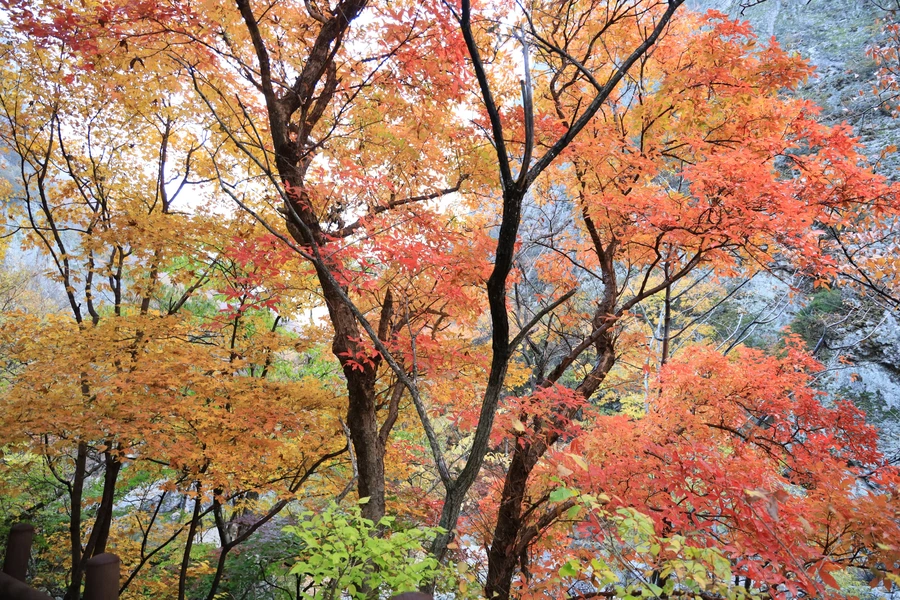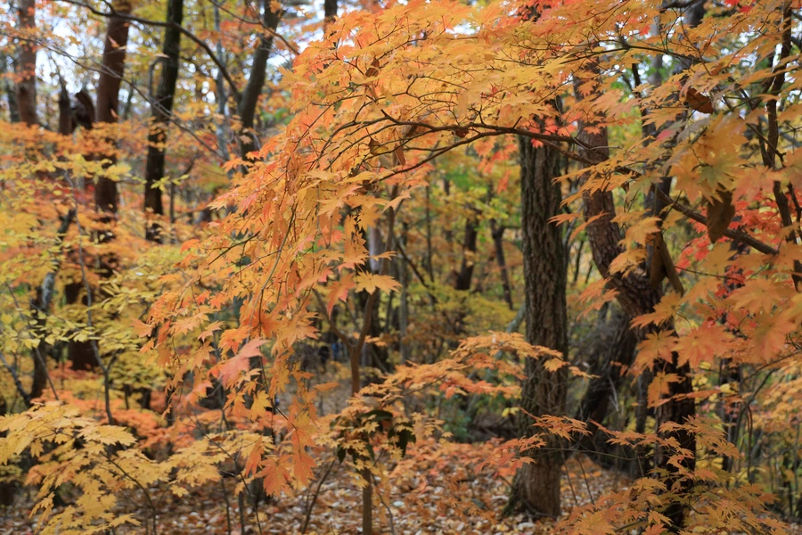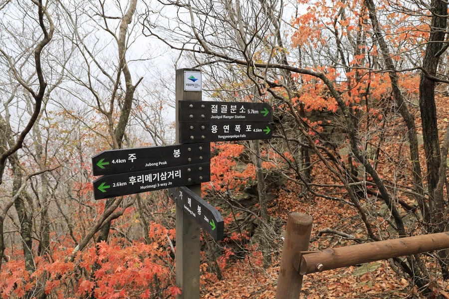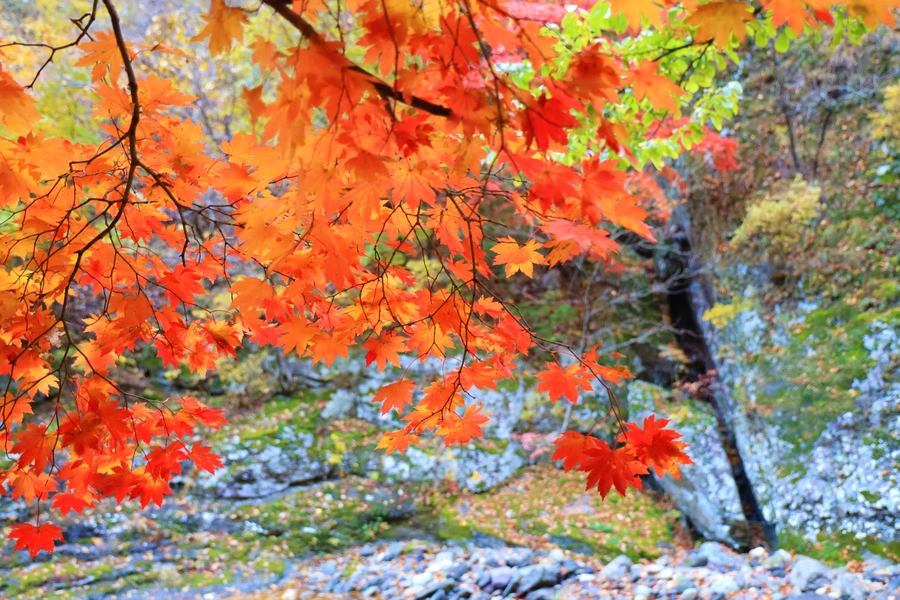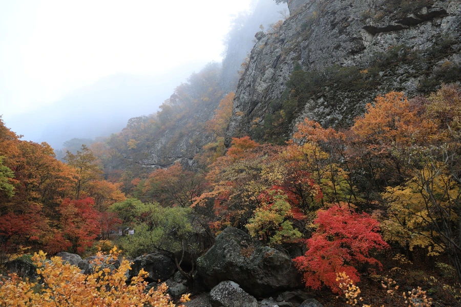 절골분소에서 후리메기 삼거리 사이가 단풍이 매우 아름답습니다. 단풍나무도 많지만, 설악산 흘림골에서처럼 기암괴석이 단풍과 멋지게 어울려 한 폭의 그림 같은 풍경이 펼쳐진답니다. 그런데 설악산과 다른 점은 그 기암괴석이 멀리 보이는 것이 아니라 아주 가까이에 있다는 것이죠.