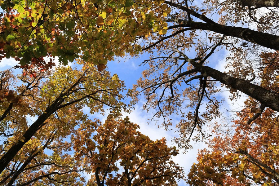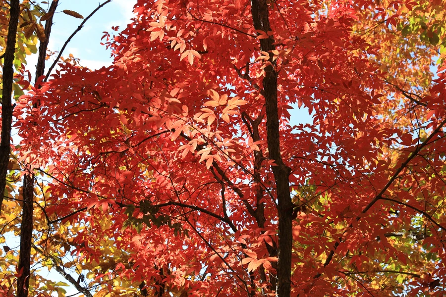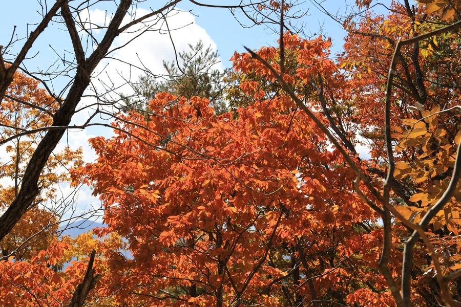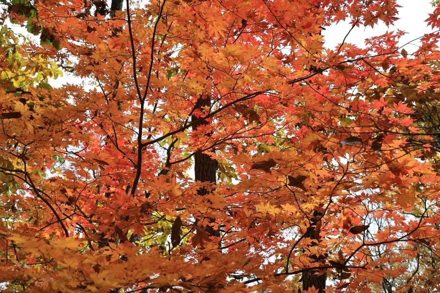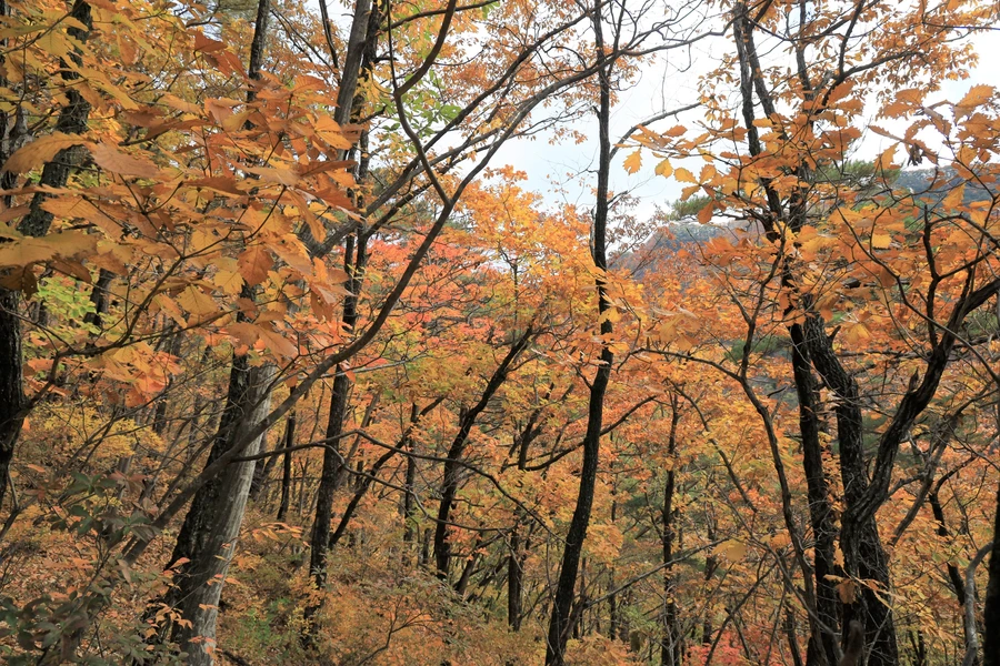 이건 상수리나무입니다. 참나무가 보통 단풍 절정 때는 주황색으로 물드는데, 가끔 이렇게 주홍색으로 물들기도 합니다.