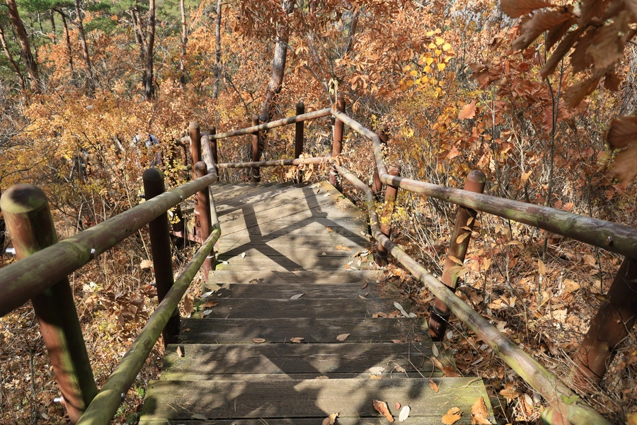 계단이 꽤 길게 연속되어 있어서, 올라오는 산행객들은 연신 헉헉댑니다. 같은 높이를 길게 걷는 것과 짧게 걷는 것을 이치적으로 따져보면, 당연히 짧은 거리가 더 강도가 셀 수밖에 없습니다.