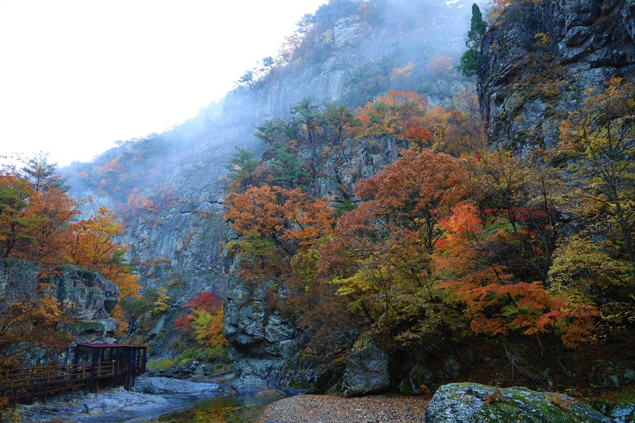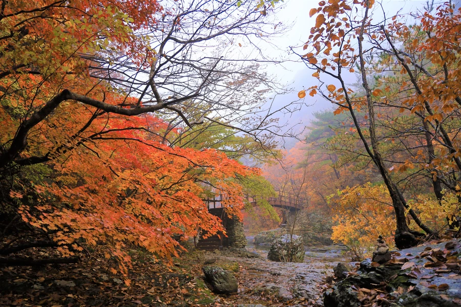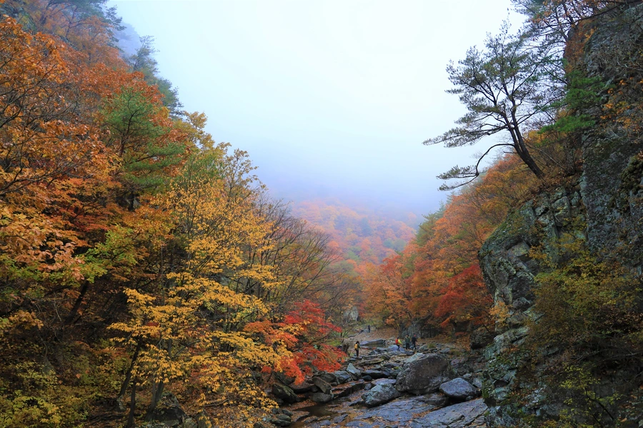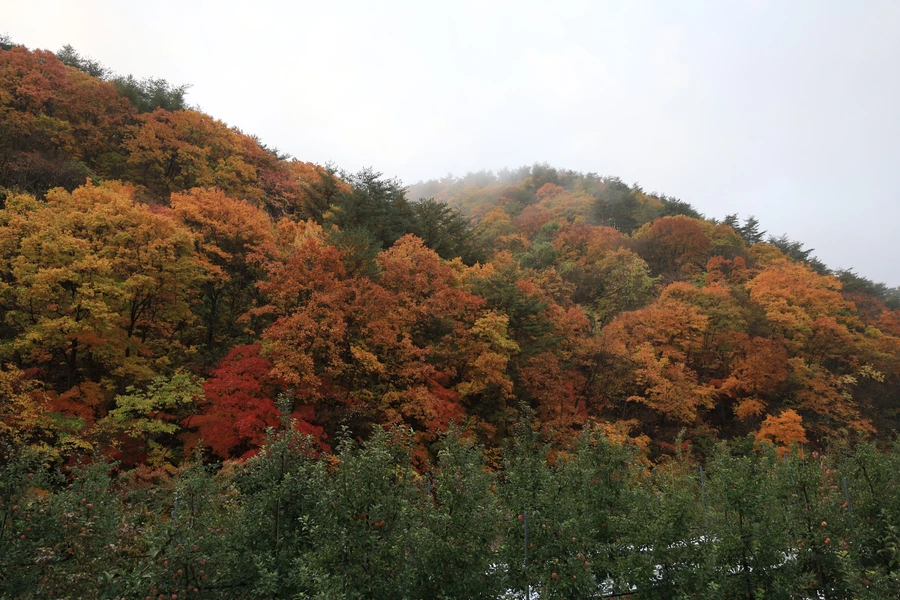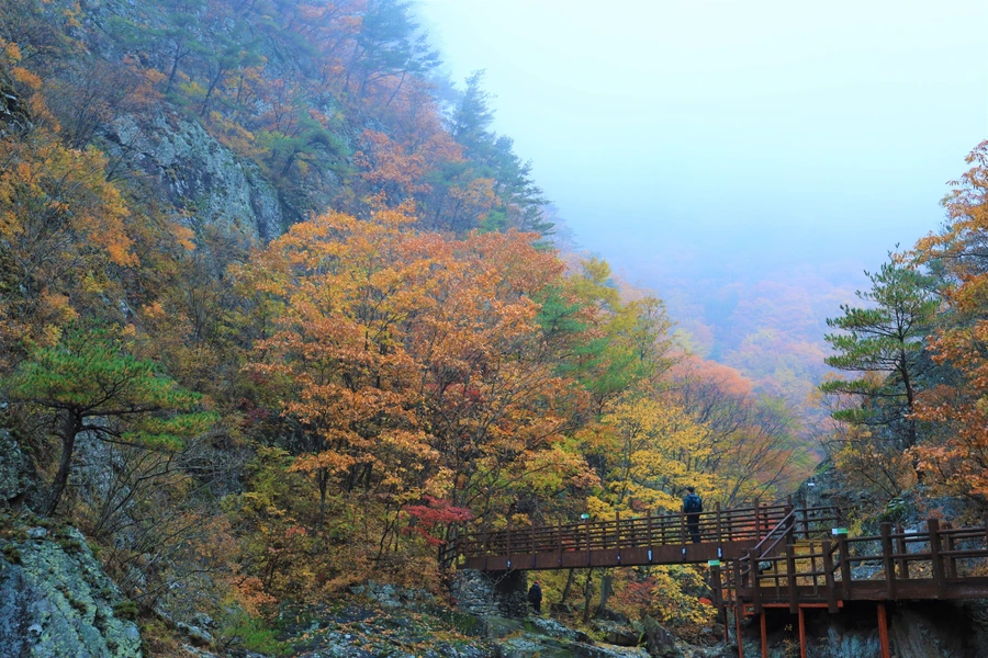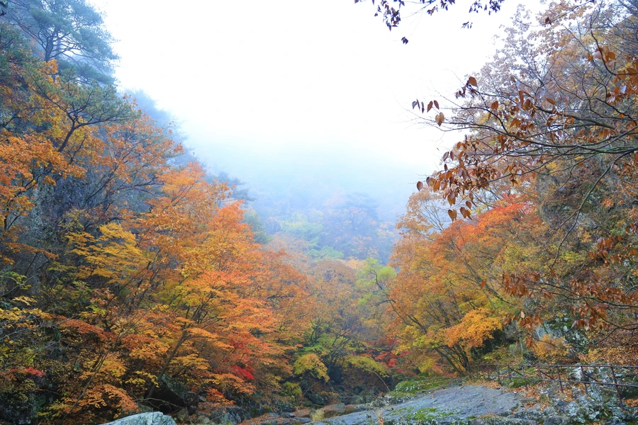 안갯속의 단풍이 더욱 신비스러운 모습이네요.
