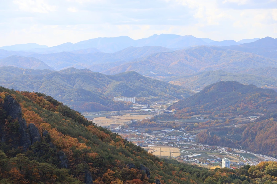 구름이 많아 그림자 때문에 어두워 단풍산의 모습이 잘 나타나지 않네요.