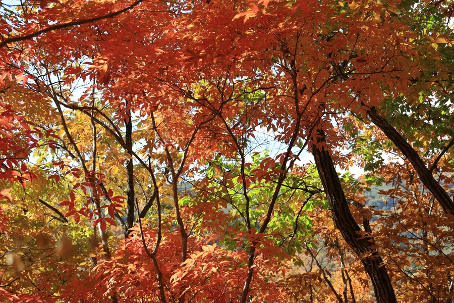 주왕산에는 의외로 복자기 나무가 많이 자생하고 있더군요. 제가 사는 아파트 옆으로 지나가는 도로에 복자기나무를 가로수로 심었는데, 공해 때문인지 단풍이 그렇게 예쁘지 않아요. 이곳의 복자기나무들은 복받은 나무들입니다. 아름다운 단풍색 좀 보세요.