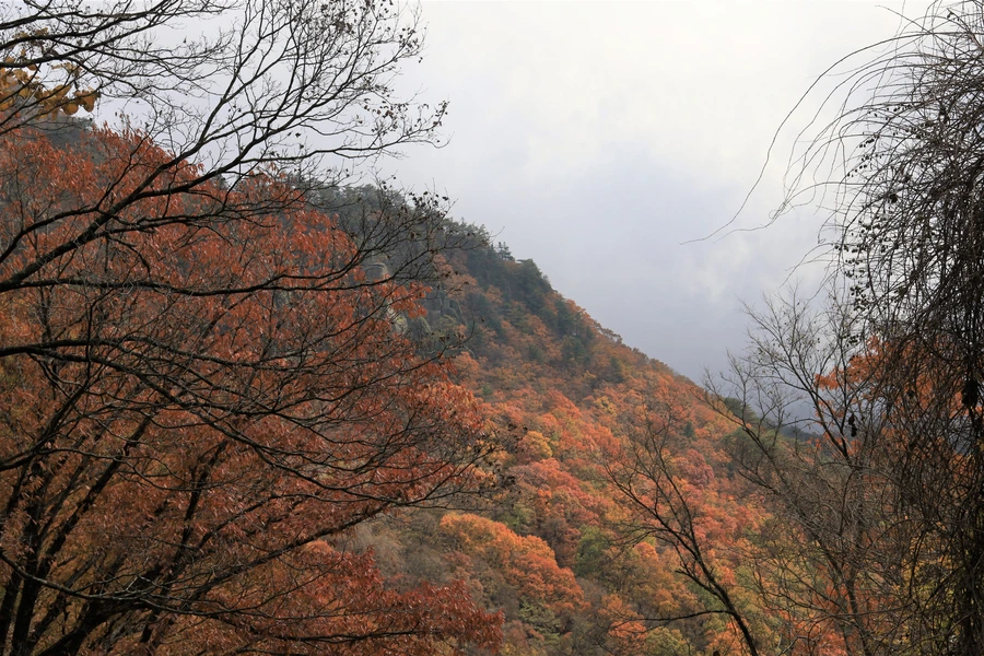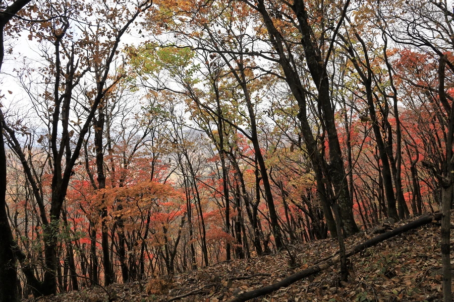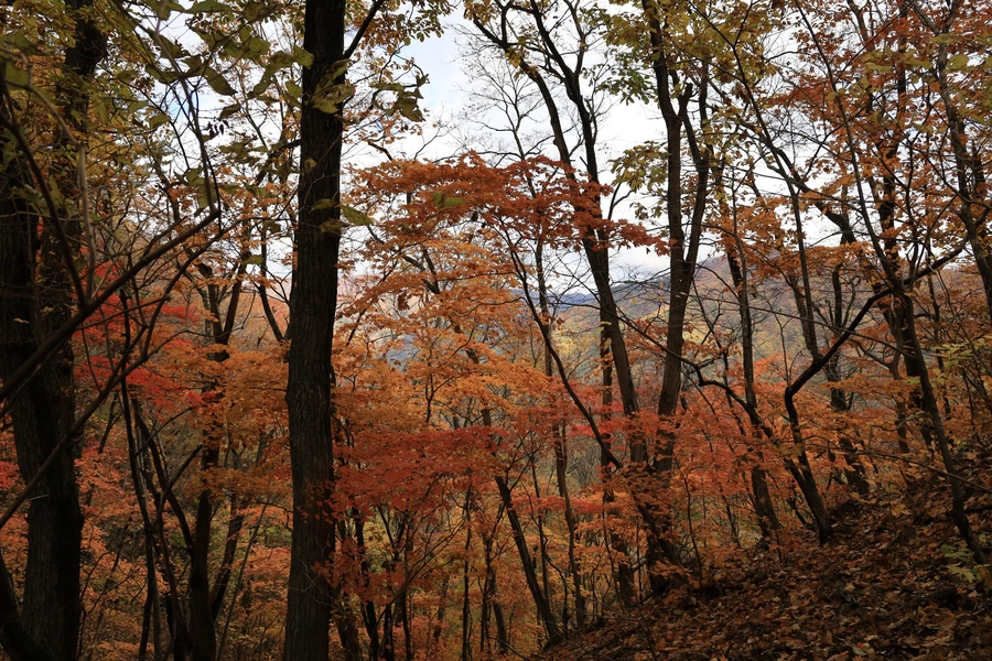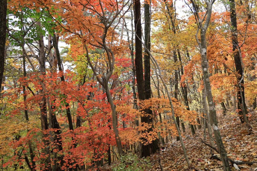 올라가는 길에 본 건너편 산은 단풍 절정이지만 나무에 가리고, 하늘이 흐려서 잘 표현이 되지 못하네요.