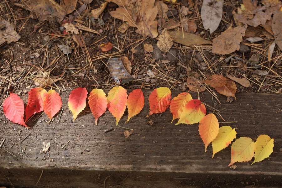서어나무 잎을 주워 모아 색의 변화에 맞추어 나란히 놓아보았습니다. 키가 크게 자라지 않는다면 화단에 키우고 싶으나 산에서만 만나야 하겠지요.