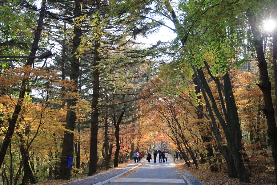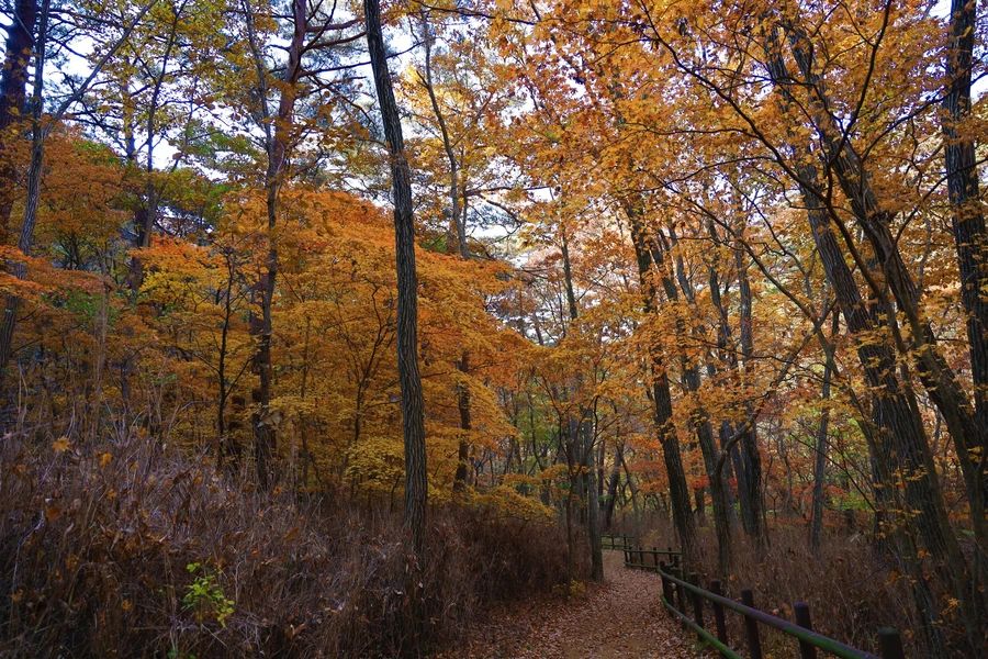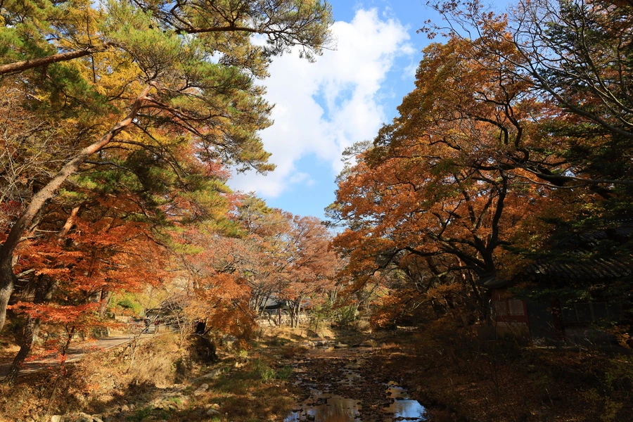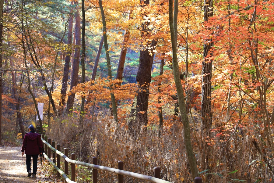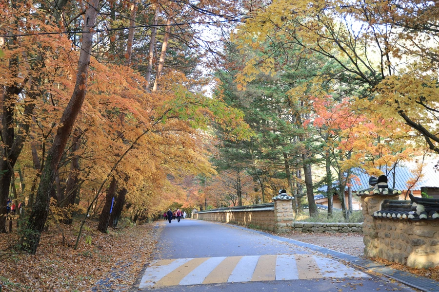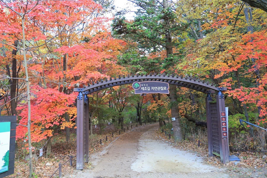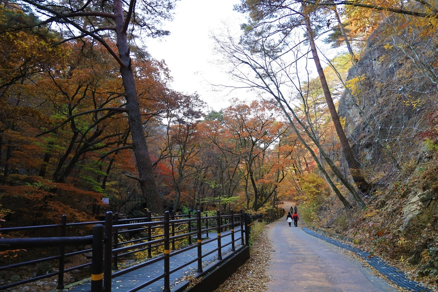 「속리산 법주사에서 복천암까지의 산책로로 전 구간이 소나무 숲과 저수지 주변으로 걸어갈 수 있도록 조성되어 있다.