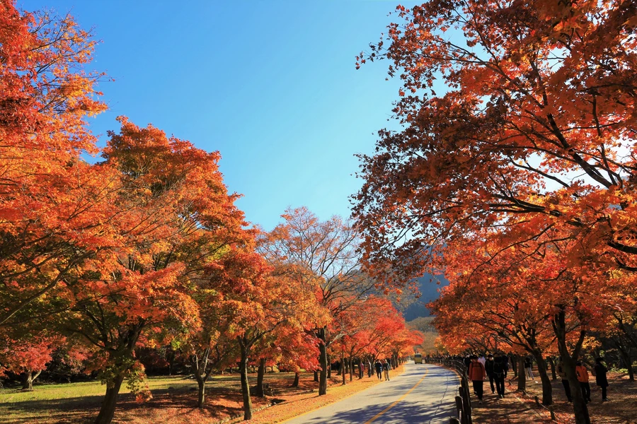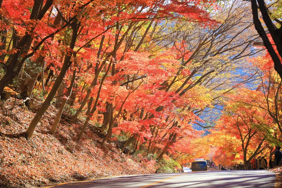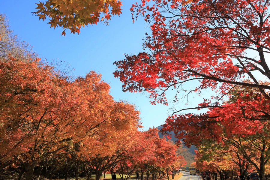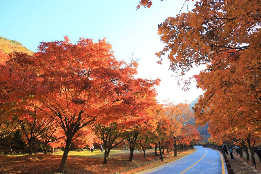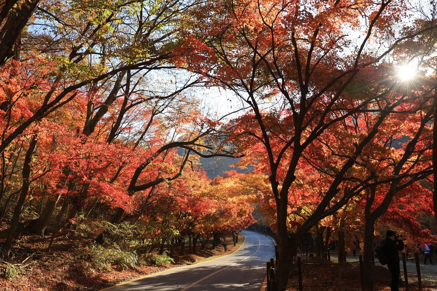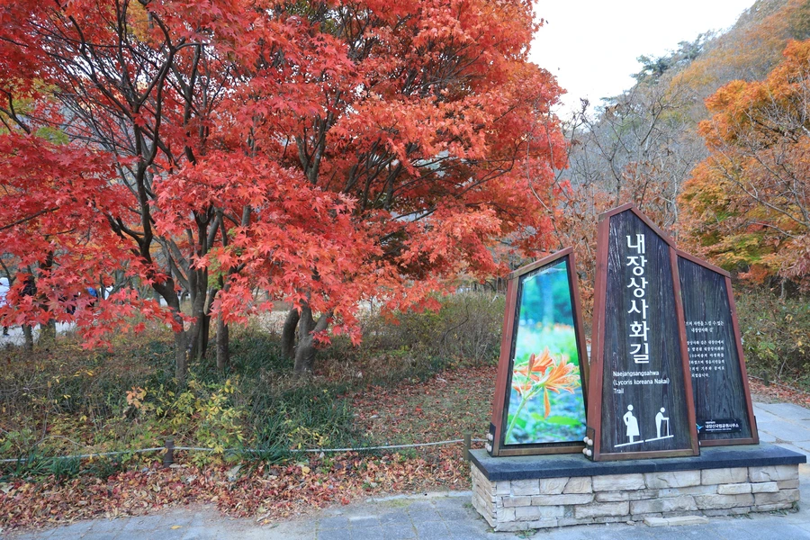 내장산이 단풍 명소로 유명한 이유는 바로 단풍나무가 많기 때문입니다. 내장사까지 들어가는 도로변과 도로 옆 숲길에 수많은 단풍나무들이 일제히 단풍이 들면 그 어느 곳에서도 볼 수 없는 아름다운 풍경이 축제처럼 연출됩니다.