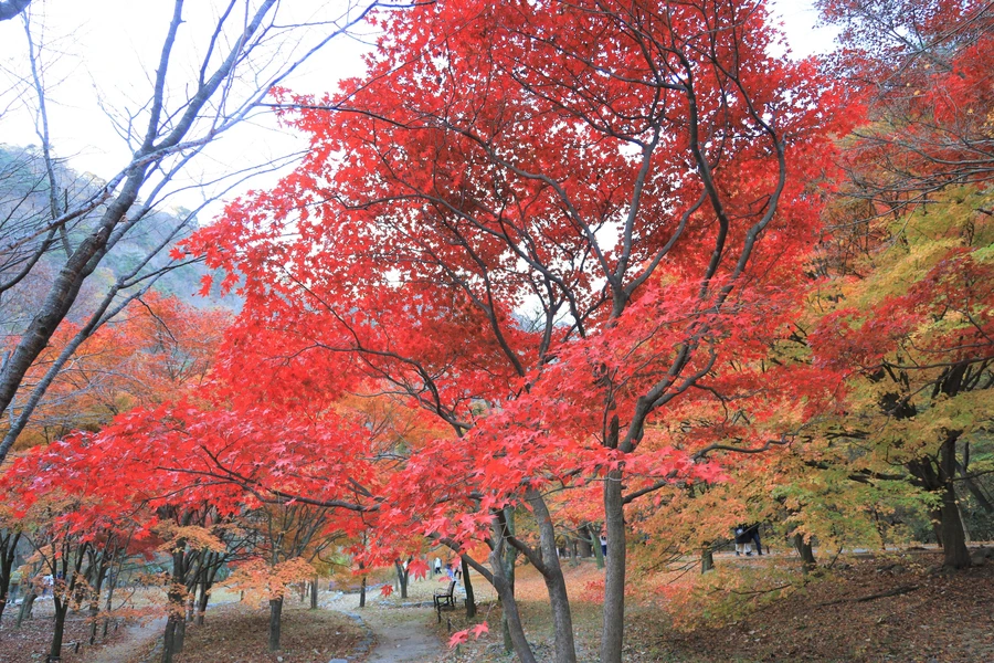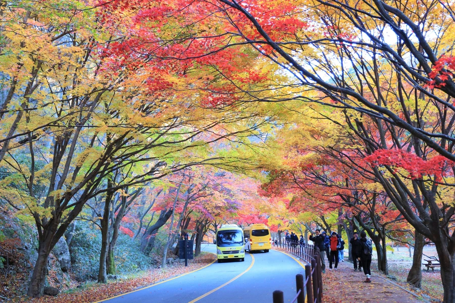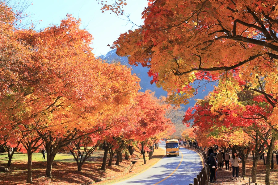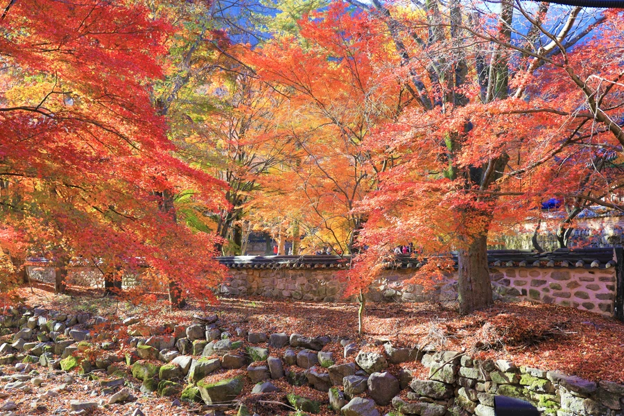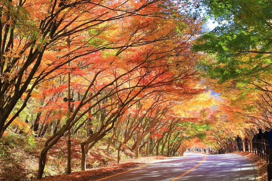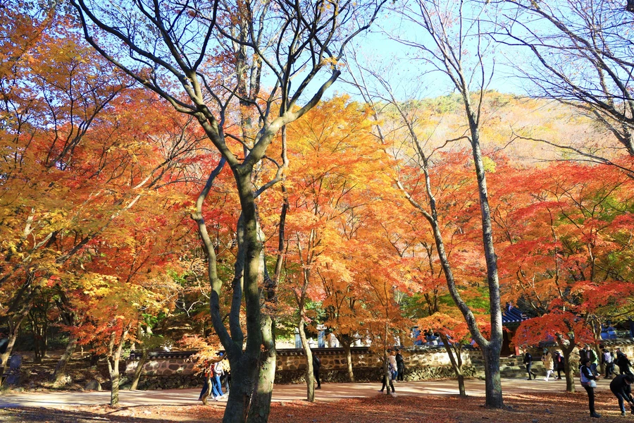 내장산이 단풍 명소로 유명한 이유는 바로 단풍나무가 많기 때문입니다. 내장사까지 들어가는 도로변과 도로 옆 숲길에 수많은 단풍나무들이 일제히 단풍이 들면 그 어느 곳에서도 볼 수 없는 아름다운 풍경이 축제처럼 연출됩니다.
