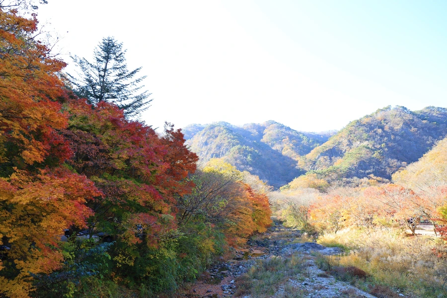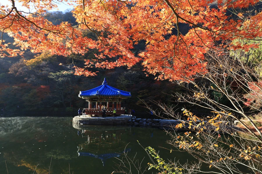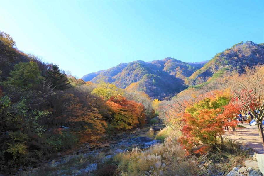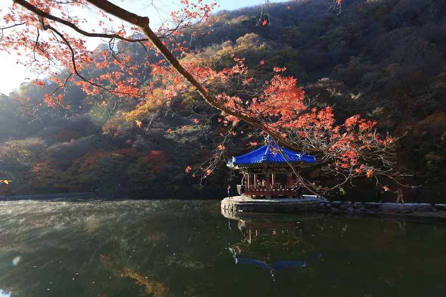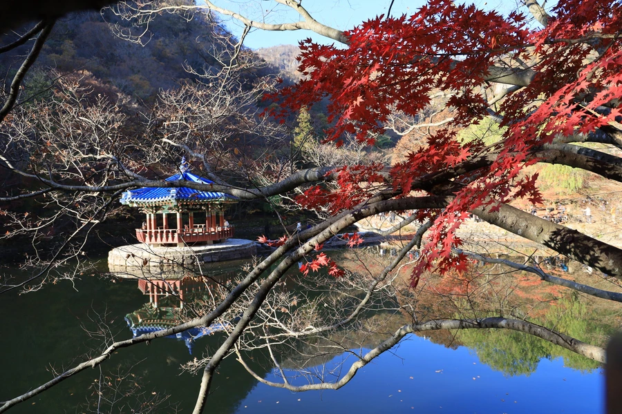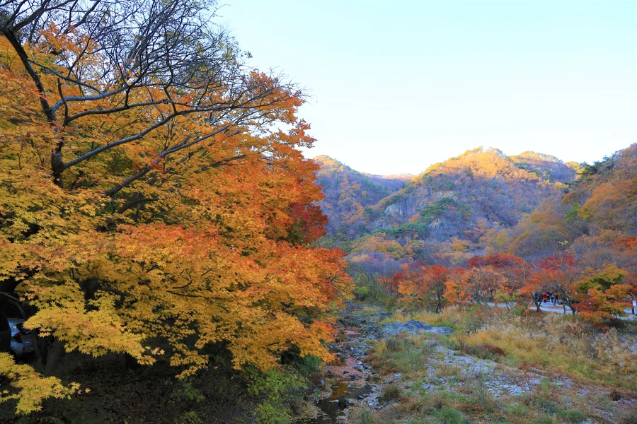 매표소를 지나자마자 다리에서 만난 단풍이 꽤 멋집니다. 절정에 맞추어 온 것이 맞는 모양입니다.