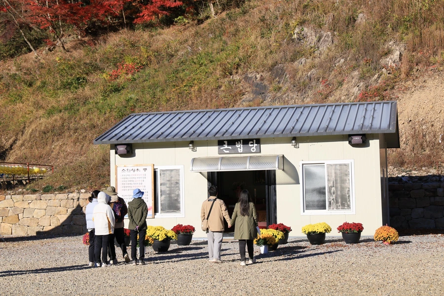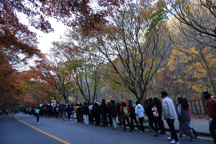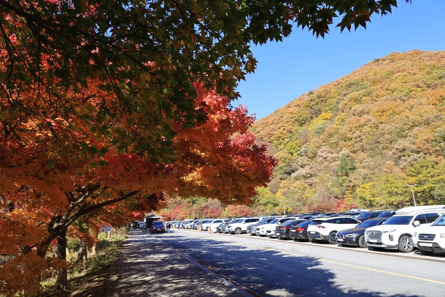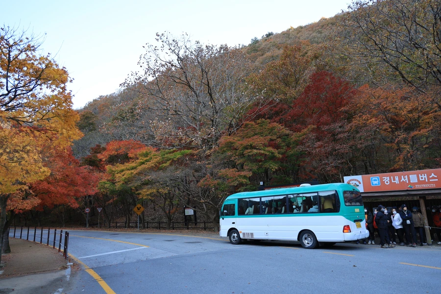 셔틀버스를 기다리는 사람들이 벌써 많이 모여있네요. 편하게 가서 좋긴 하겠지만, 단풍길은 걸어야 제대로 보지요.
