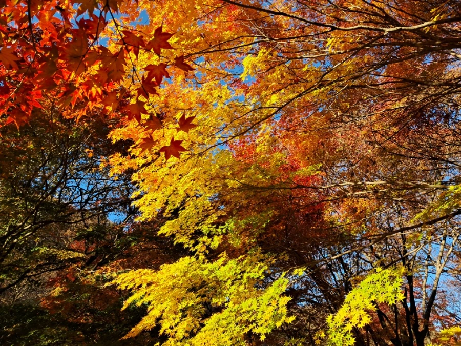 단풍나무로 표현될 수 있는 모든 색이 이 사진에 다 표현이 되어있네요.