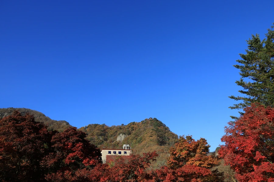 케이블카 승강장 위로 깨끗한 파란 하늘이 드러나는군요.