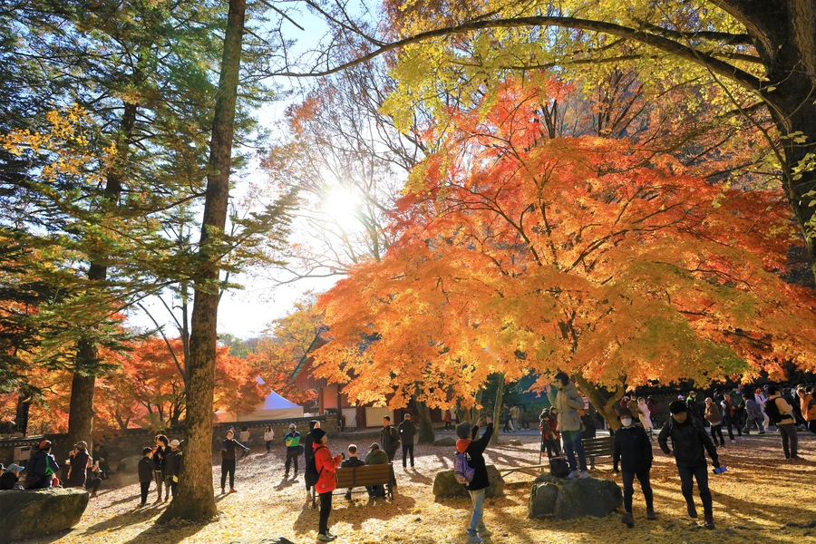 포토존 단풍나무입니다. 주변에 사람들이 꽤 많습니다.