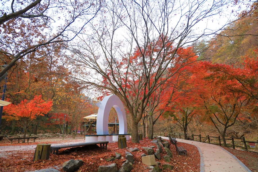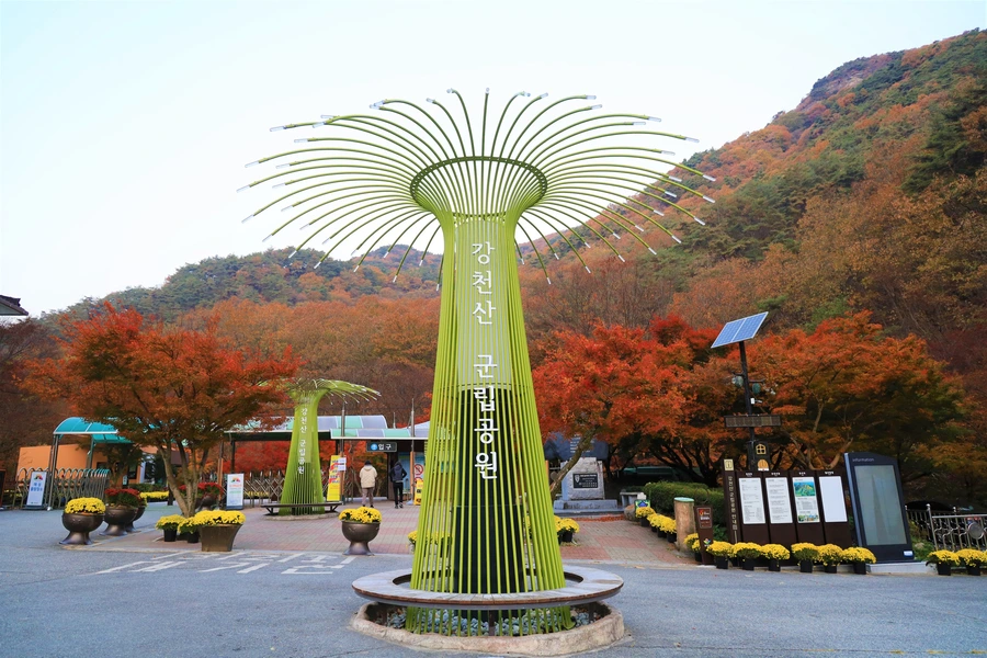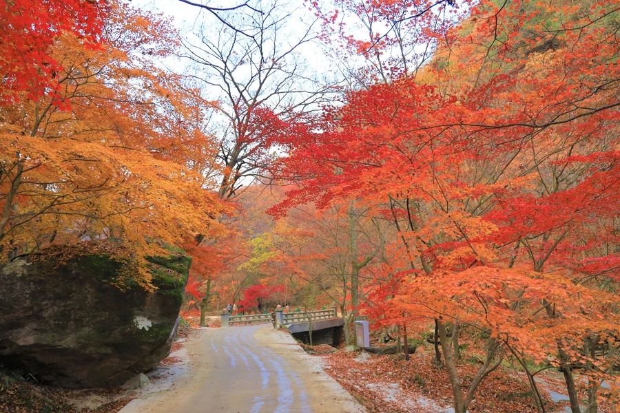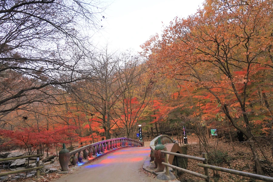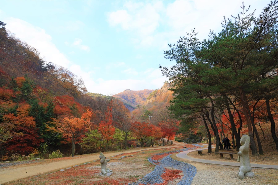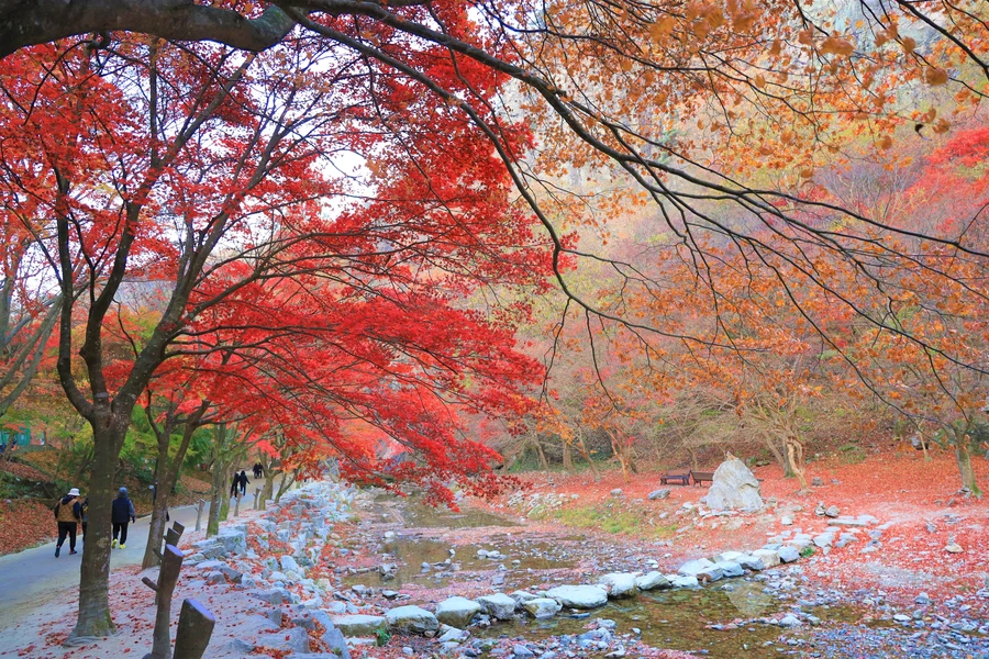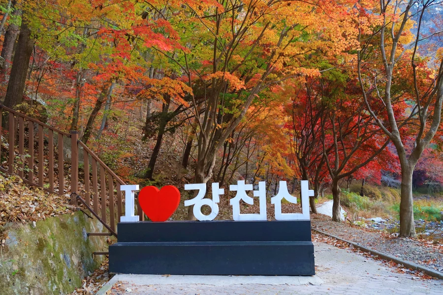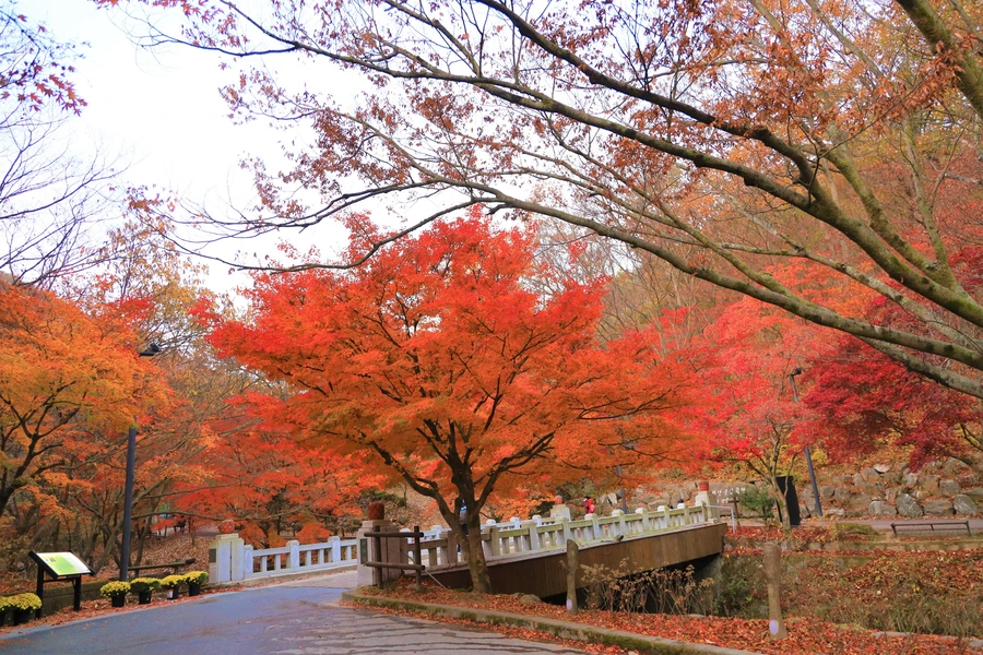입구부터 강렬한 색상입니다. 강천산도 단풍 절정 시기에 잘 온 것 같습니다