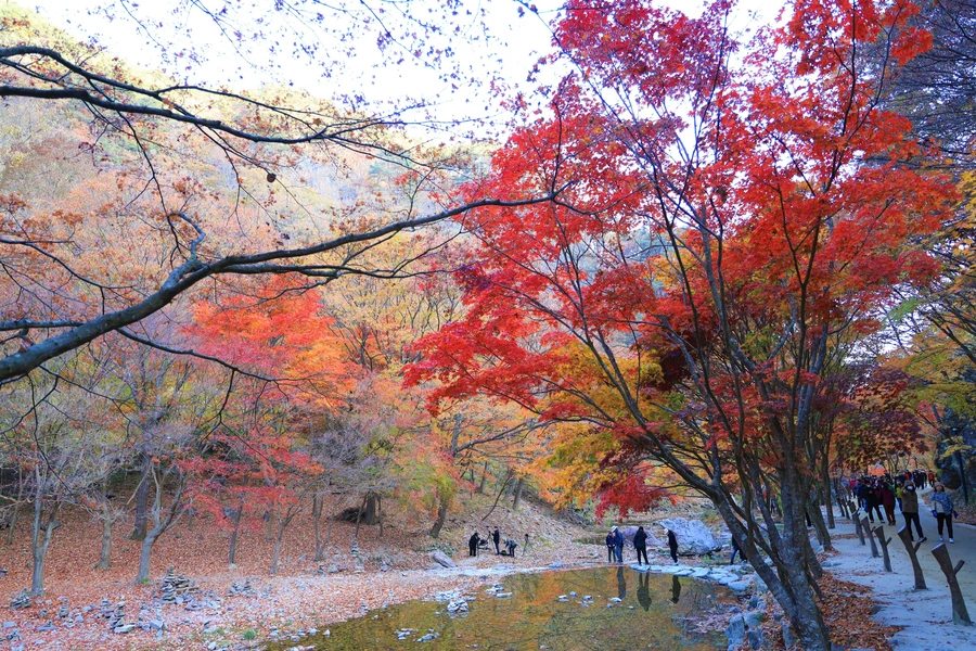 단풍철은 순식간에 지나갑니다. 10월 15일 오대산 단풍 산행을 시작으로, 선재길, 설악산 흘림골, 주왕산, 속리산 세조길, 내장산, 백양사, 그리고 11월 5일 강천산까지 4주 동안 8곳의 단풍 명소를 걸었습니다. 어느 곳이나 나름대로 단풍길의 아름다움을 우리에게 선사해 주었지요.