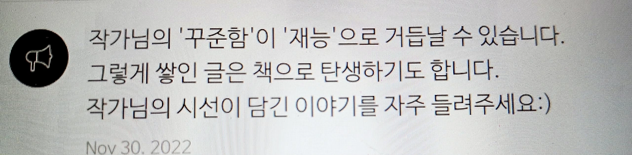 이런 알림이 떴네요. 꾸준히 글을 쓰라는 경고인 거죠?