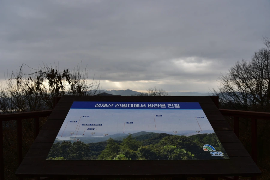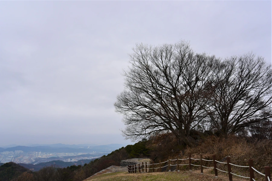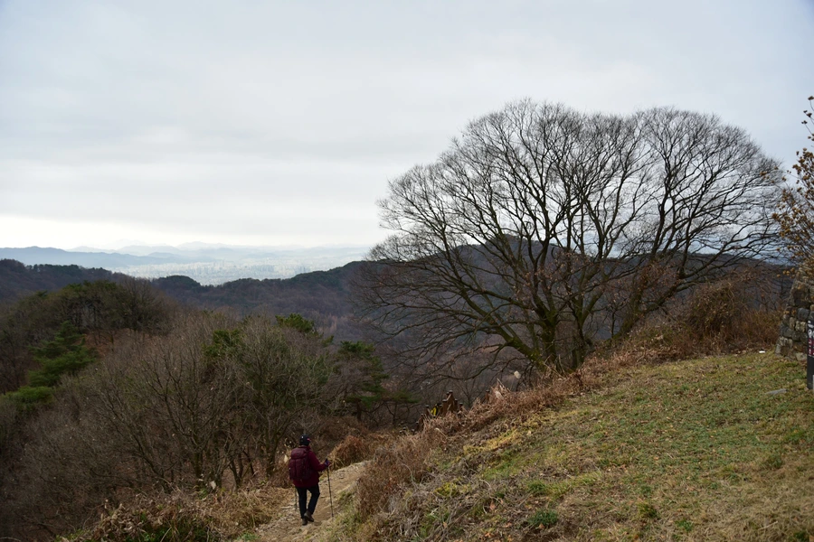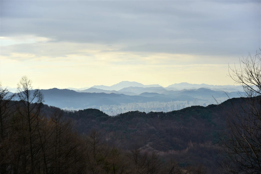 대전 시내가 꿈 속인 듯 아련히 보이는 것은 몇 겹으로 겹쳐진 능선 때문이겠지요. 맑은 날씨면 더 좋았겠지만, 흐린 날씨에는 가끔 이런 몽환적인 분위기를 만나기도 합니다.