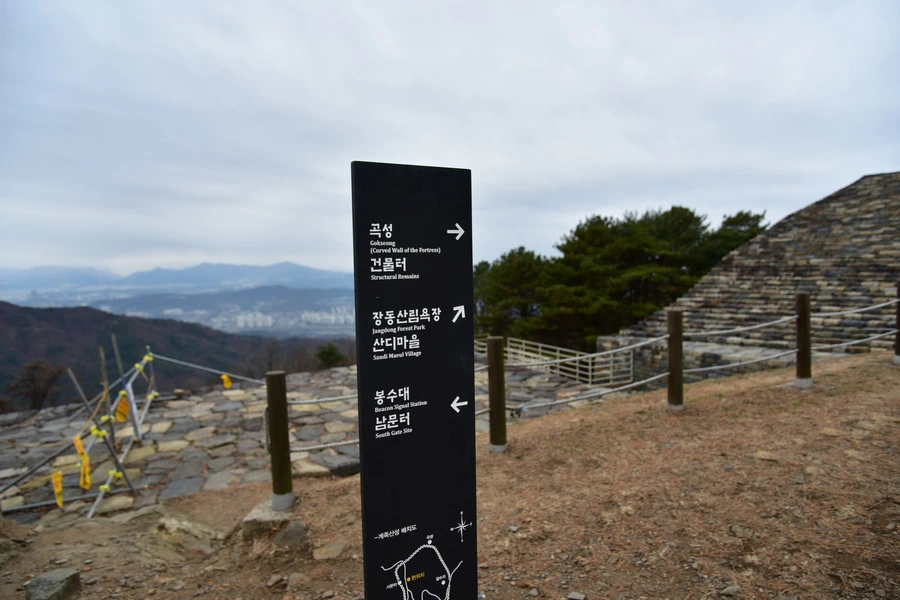 1992년부터 꾸준히 복원해온 계족산성은 한 바퀴 돌아 원점으로 돌아올 수 있는 온전한 형태로 총 길이 1,037m라고 합니다. 곡성구간 공사가 끝나면 한 바퀴 돌아 보아야겠습니다.